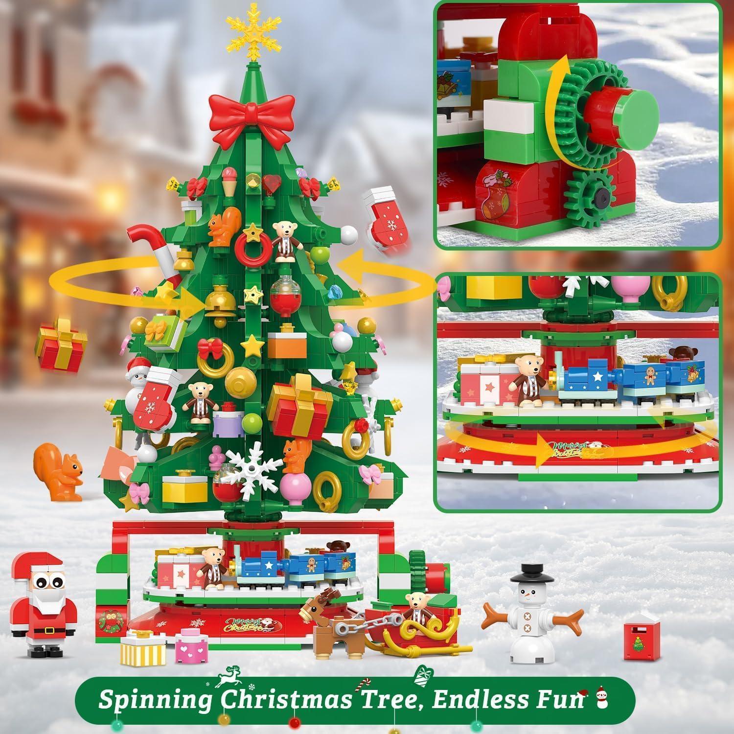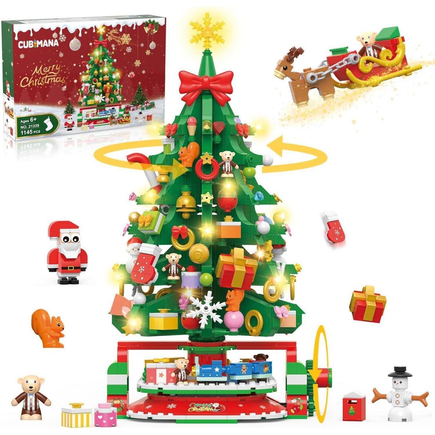 CUBIMANA Rotierender Weihnachtsbaum Mini Bausatz mit LED Licht - Bringen Sie mit diesem 1145-teiligen Weihnachtsbauset den Zauber der Feiertage in Ihr Zuhause