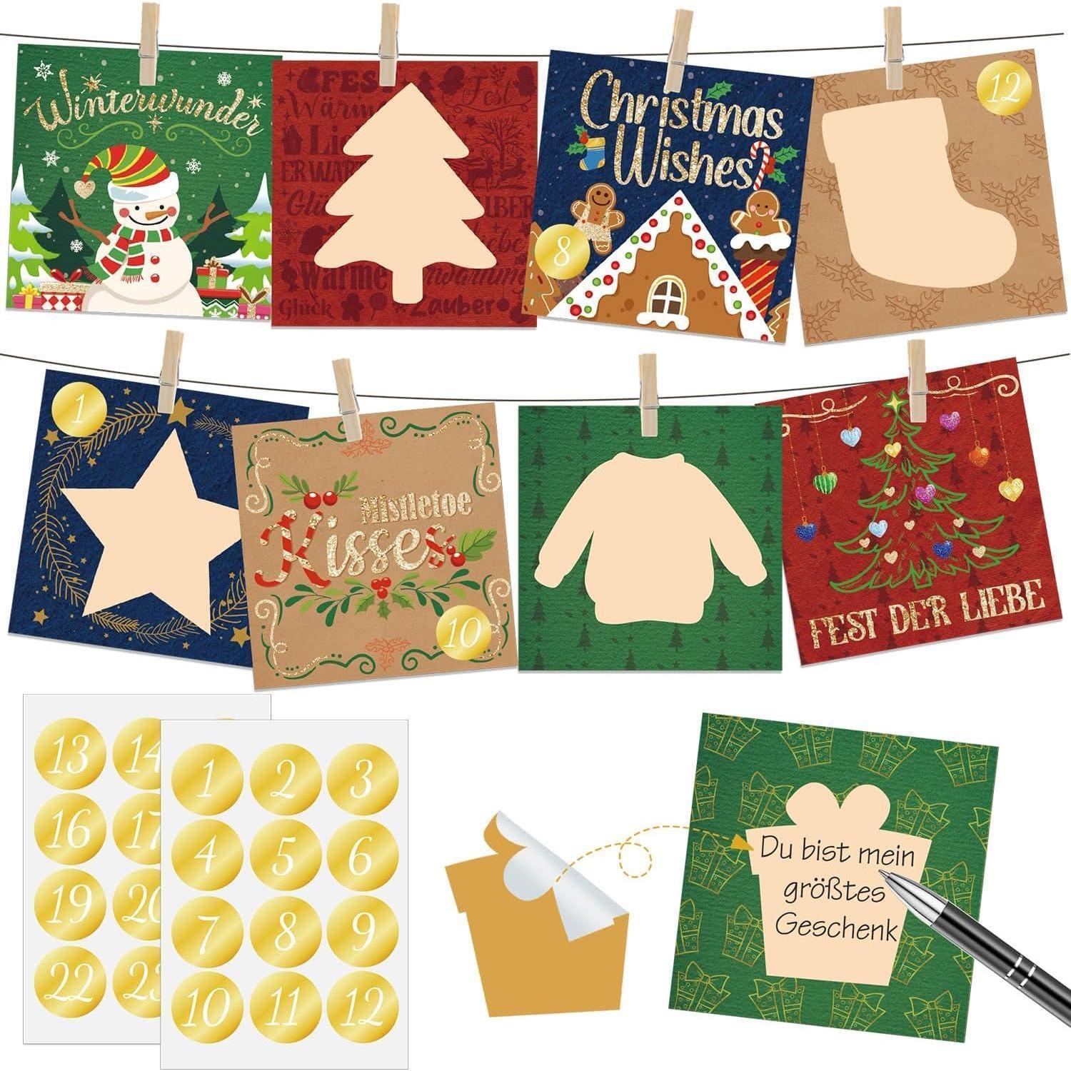 DIY Adventskalender Set - Enthält alles, was Sie brauchen, um 24 individualisierte Rubbelkarten zu erstellen.