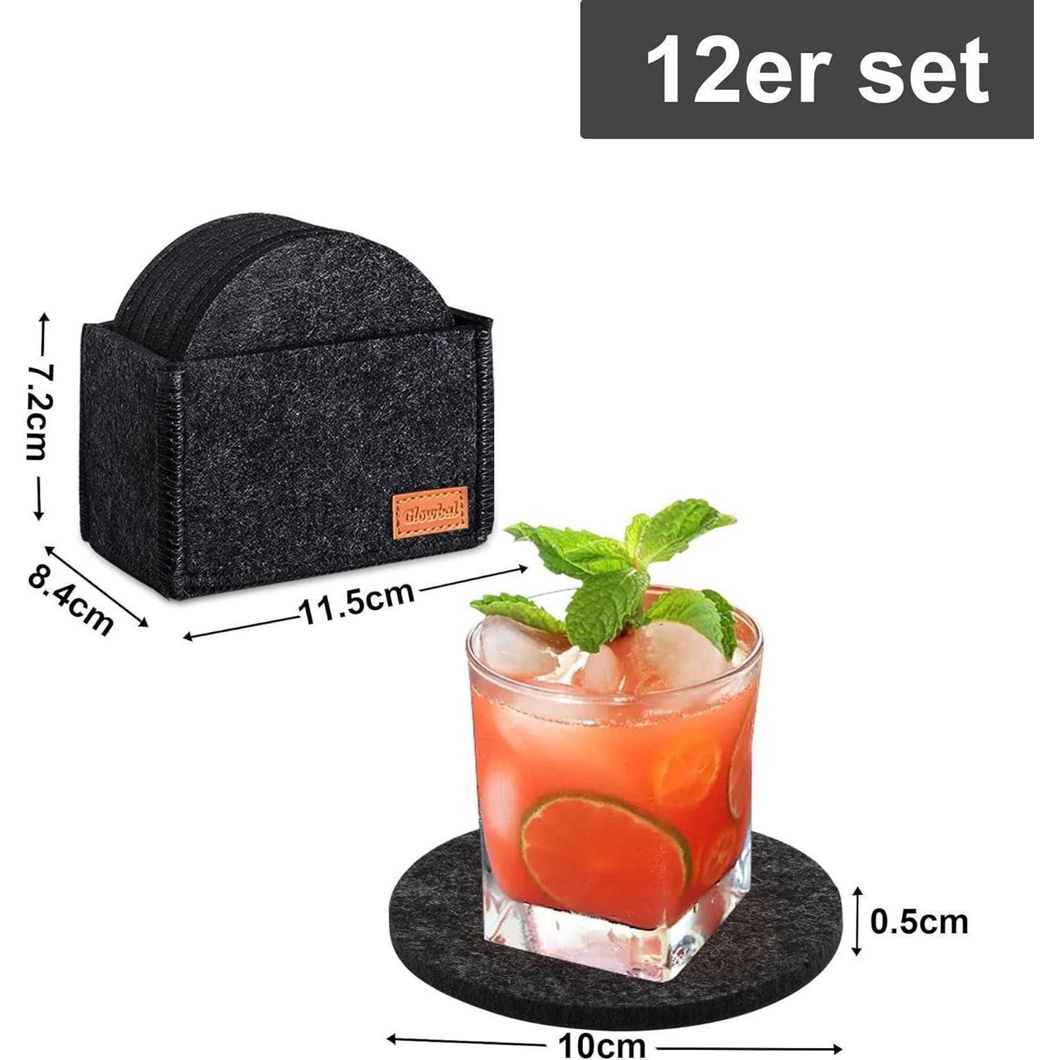 Runde Filz Untersetzer 12er Set in dunkelgrau