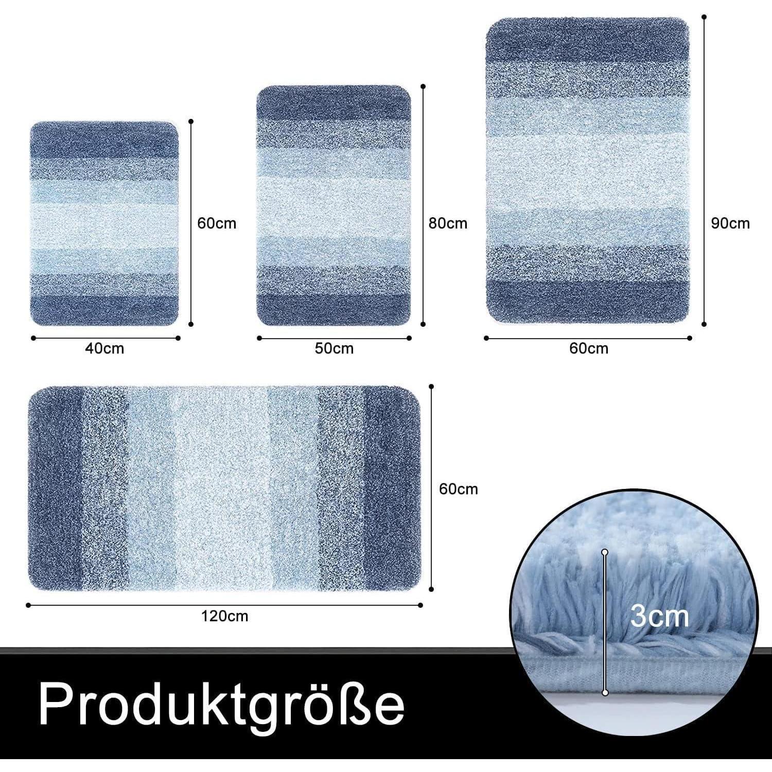 Rutschfester Badezimmerteppich 60x120cm Flauschiger Blauer