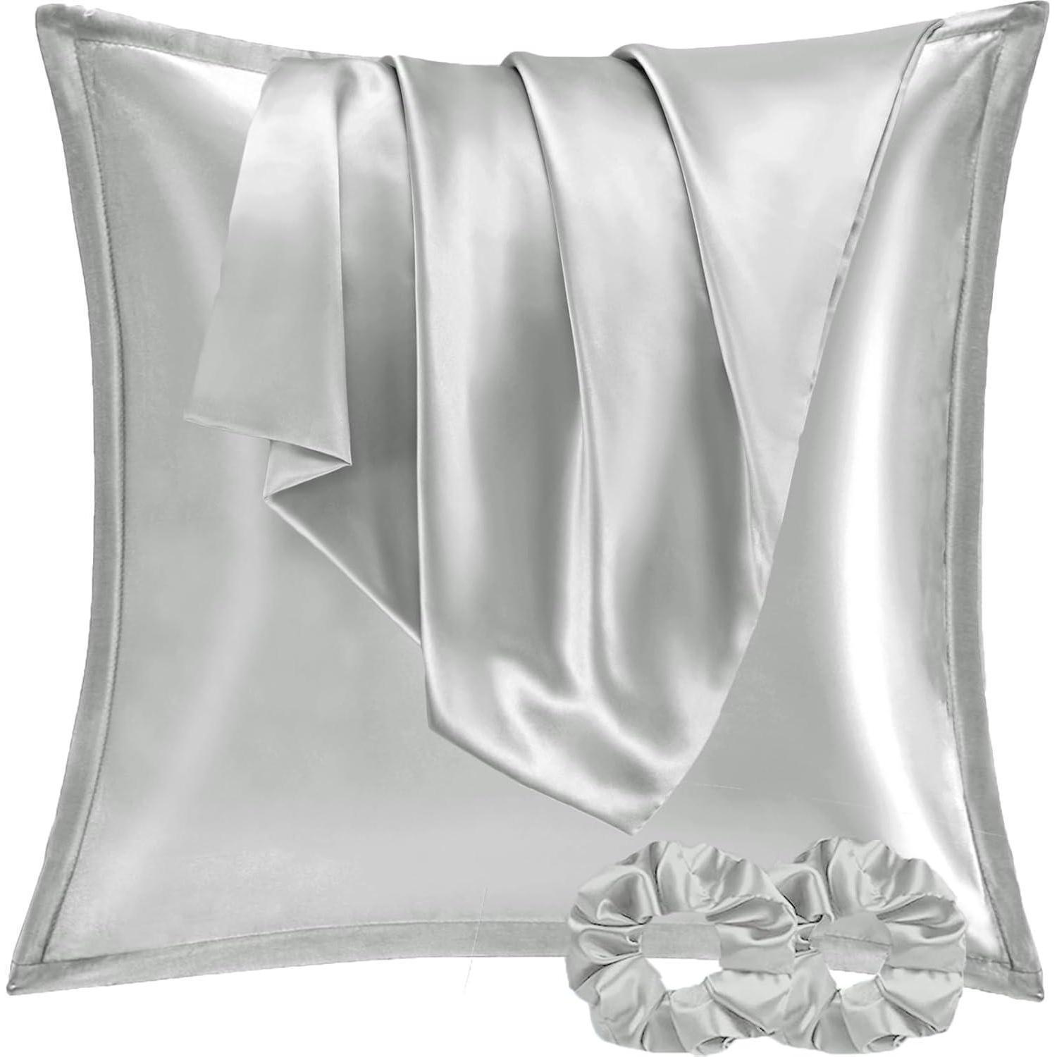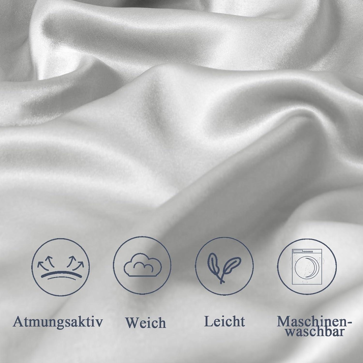 Satin Kissenbezug 65x65 Hellgrau 2 Stück Haut Haar 2