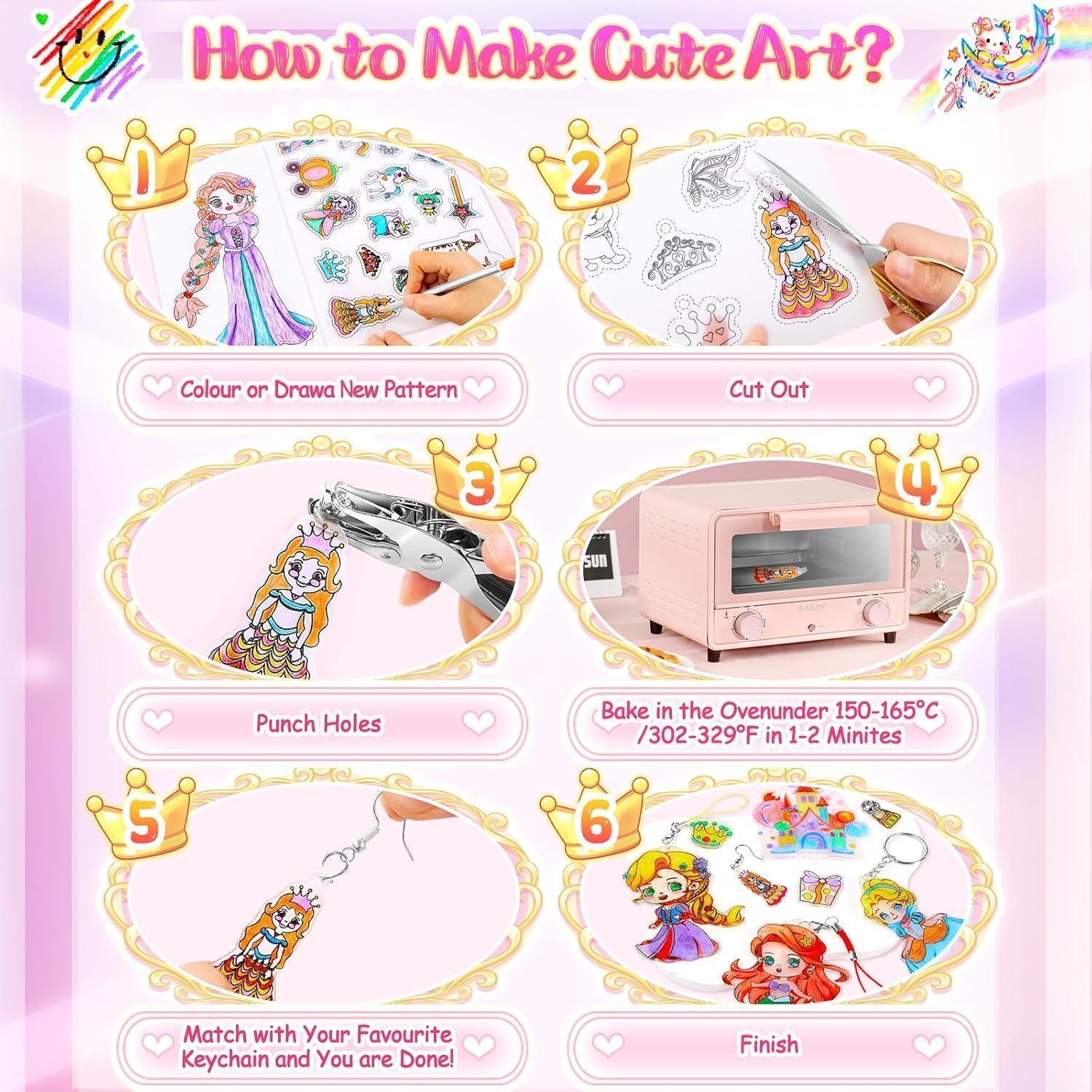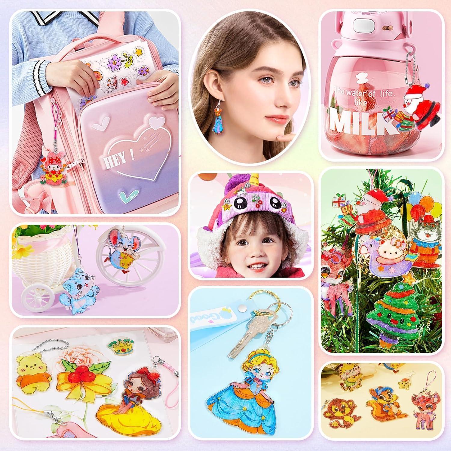 Neben Schlüsselanhängern können Sie mit diesem Set auch Ohrringe, Geschenkanhänger, Lesezeichen und Schmuckanhänger gestalten. Durch das Schrumpfen im Ofen werden die Farben intensiver und das Objekt schrumpft auf ca. 20% seiner Originalgröße, was für einzigartige Ergebnisse sorgt.