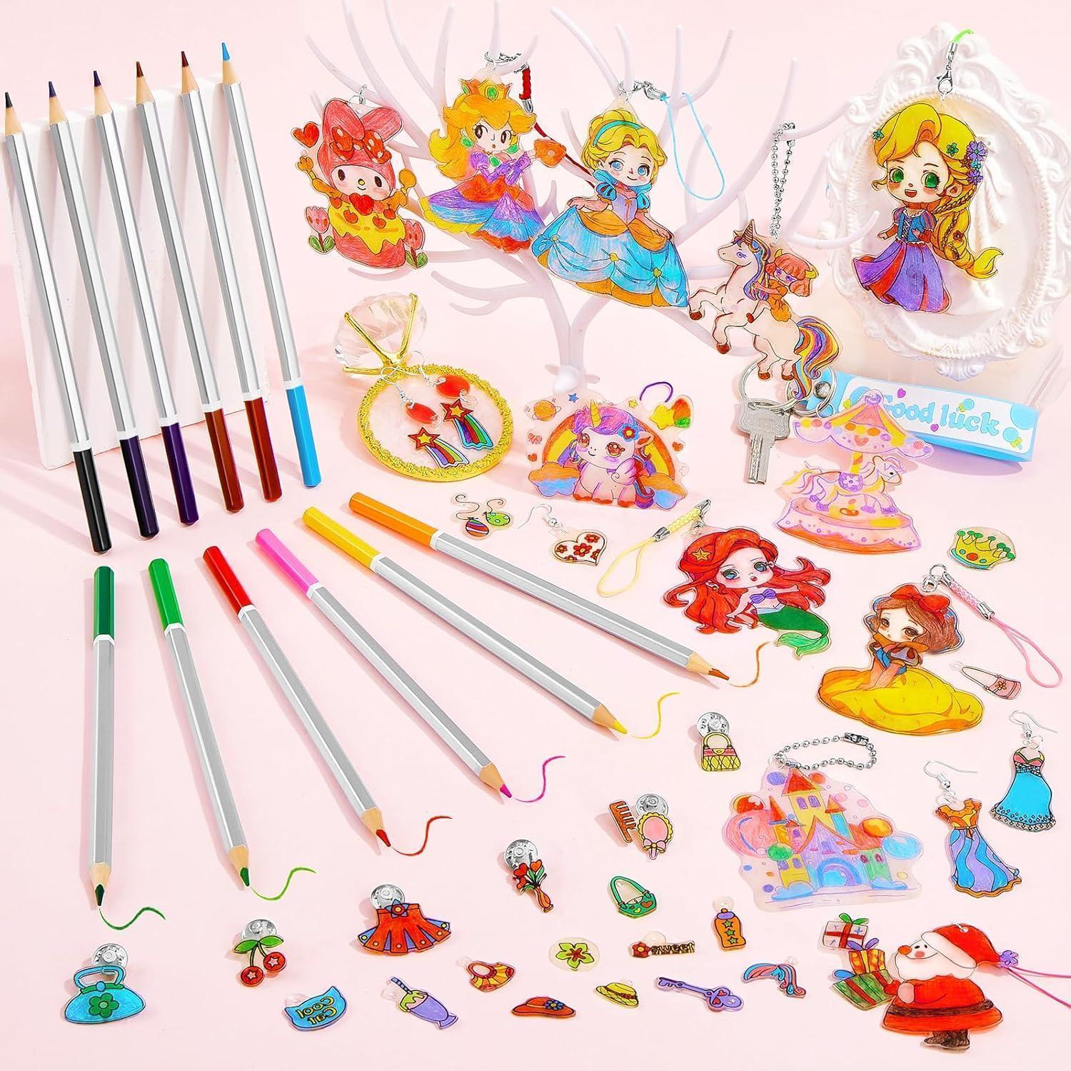 Schrumpffolie Set - Enthält verschiedene Motivvorlagen, Farbstifte und Zubehör