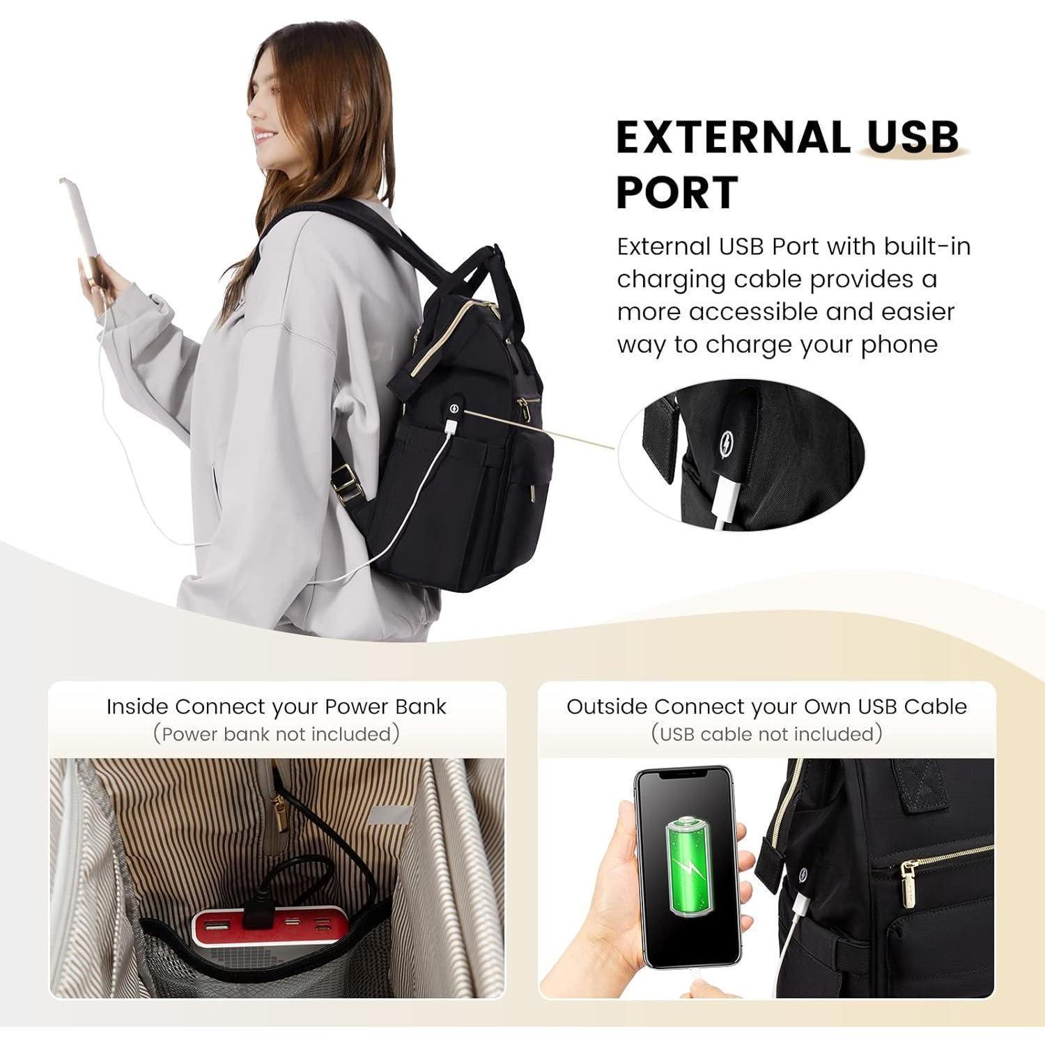 Ein besonderes Highlight ist der eingebaute USB-Ladeanschluss mit internem Kabel, der es Ihnen ermöglicht, Ihr Telefon unterwegs aufzuladen, ohne die Powerbank in der Hand halten zu müssen. Die gepolsterten Fächer bieten Schutz für Ihren Laptop und Ihr iPad, während die hochwertige Nylonkonstruktion sicherstellt, dass Ihre Geräte vor leichtem Regen geschützt sind.