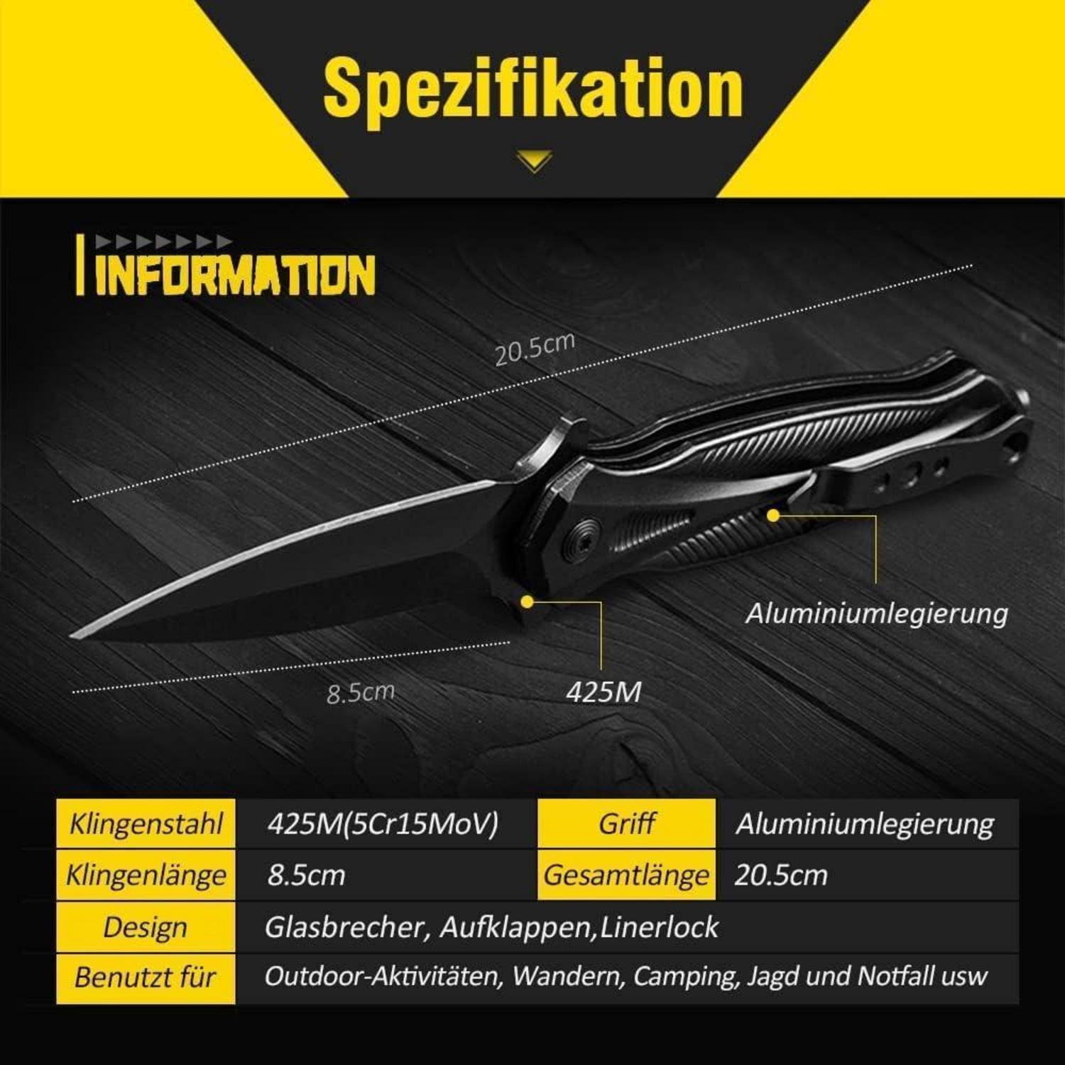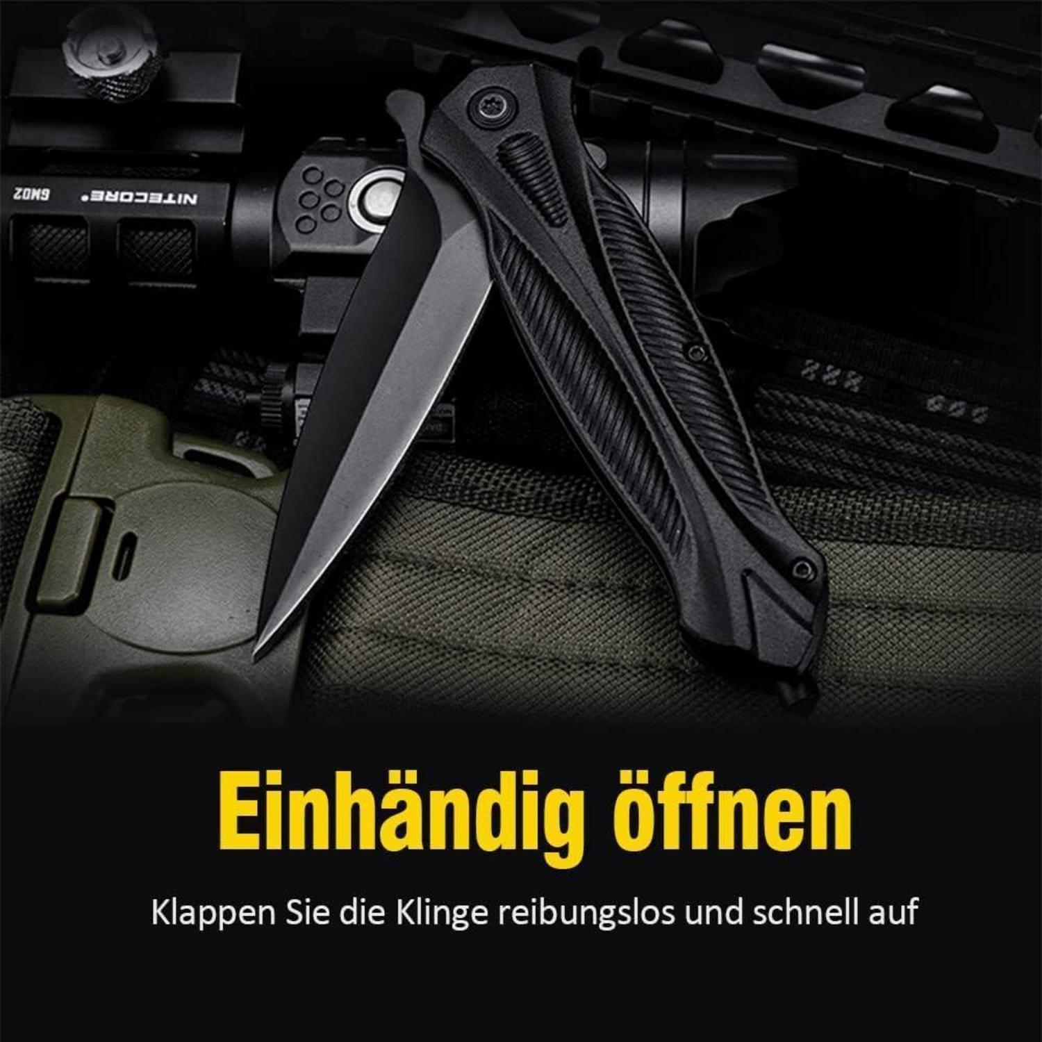 Schwarzes Klappmesser, Taschenmesser mit Clip, Einhandmesser, Outdoor Messer, EDC Messer für Männer - Dieses schwarze Klappmesser von BEEK ist ein vielseitiges Werkzeug, das mit einem stromlinienförmigen Griff aus Aluminiumlegierung für optimalen Halt und Bedienkomfort ausgestattet ist.