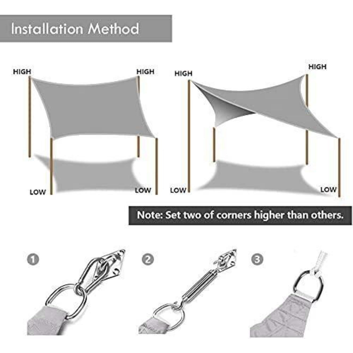Robust, langlebig und konkaves Design für Allwetterschutz. Dripex Sonnentuch hat doppelt genähte Kanten und verstärkte Ecken, für eine lange Lebensdauer. Mit Edelstahl-D-Ringen in jeder Ecke. Sonnensegel haben Kurven an den Rändern, um die Spannung durch das Segel aufzubauen. Während die Ecken des Segels gespannt werden, die Kantenbögen, sich zu begradigen und den Stoff festzuziehen. Diese Konstruktion verbessert die Zugfestigkeit, verhindert wirksam, dass Sonnensegel herunterfällt.