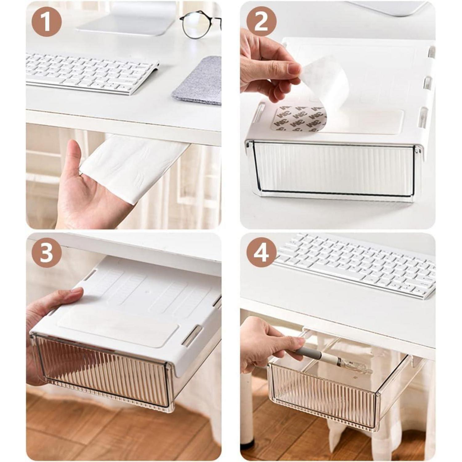 Unterbau Schublade, Schreibtischschublade, Kreative Selbstklebende Schublade, Desktop Organizer Schubladenfach für Wohnzimmer, Büro, Arbeitszimmer (24×21×6CM Transparentes Weiß 1 Stück) - Verstecktes Speicherdesign: Unsichtbarer Speicherplatz am unteren Rand des Schreibtisches beansprucht nicht den Desktop-Speicherplatz. Es ist nicht einmal in Ihrer Sichtlinie sichtbar und bietet Ihnen ein gewisses Maß an Privatsphäre.