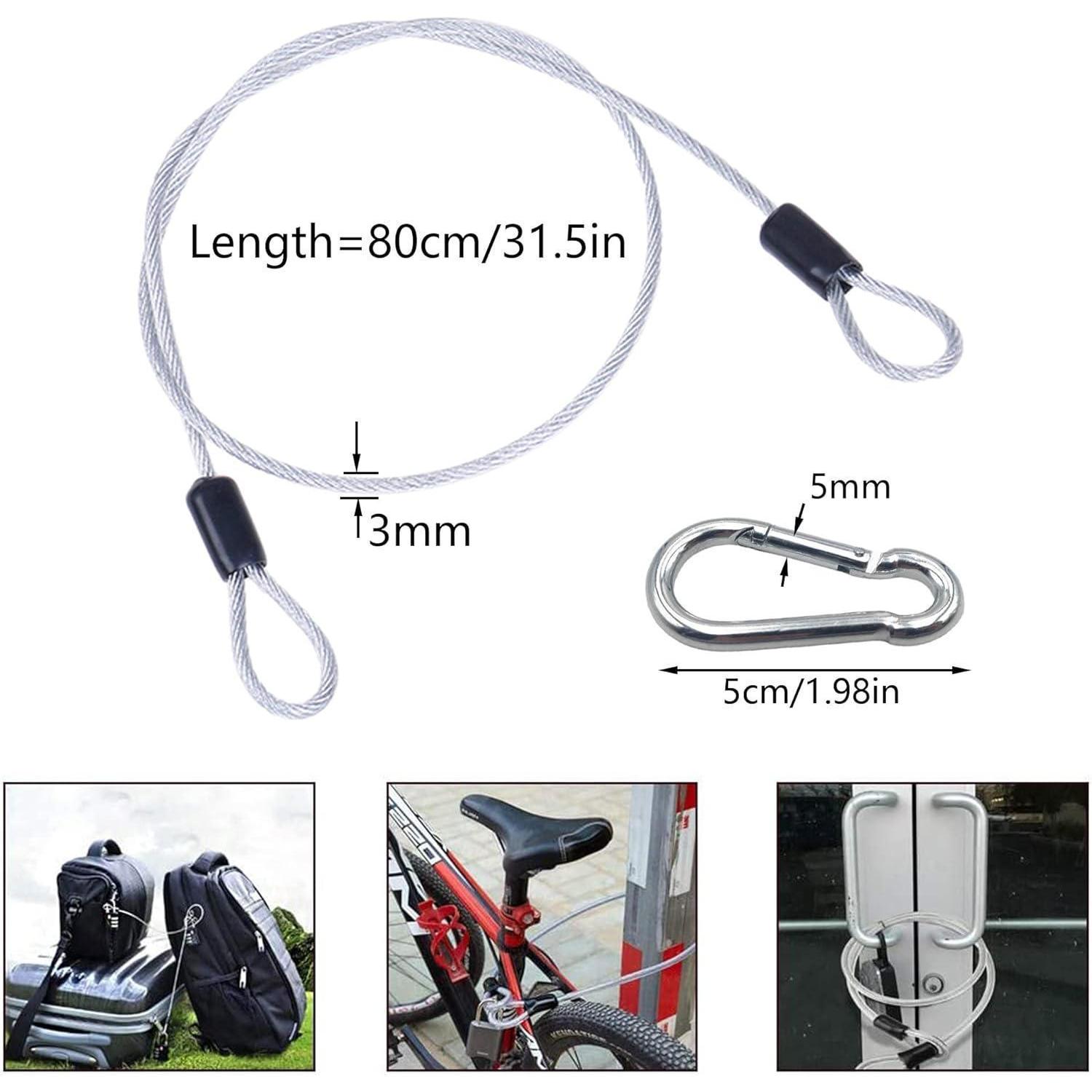 4 Stück Drahtseil Sicherheitskabelschloss Stahlseil mit Ösen Sicherheit Edelstahl Sicherheitskabel Diebstahlsicherung Seil mit Karabiner für Gartenmöbel, Fahrrad. (0.8m x 3mm)