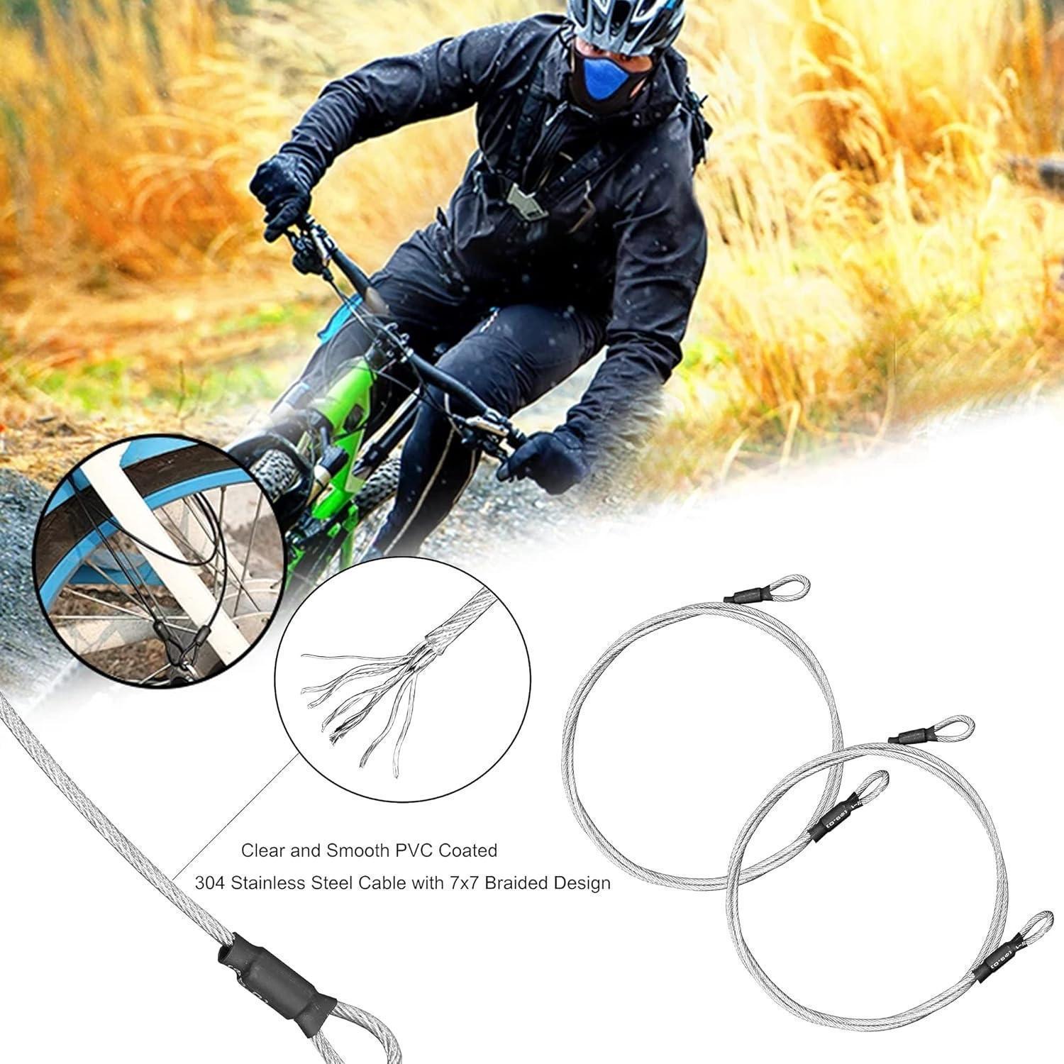 Einfache Handhabung: Mit den beiden Halteösen und dem Karabinerhaken ist das Sicherheitskabel einfach zu installieren und kompatibel mit verschiedenen Schlössern.