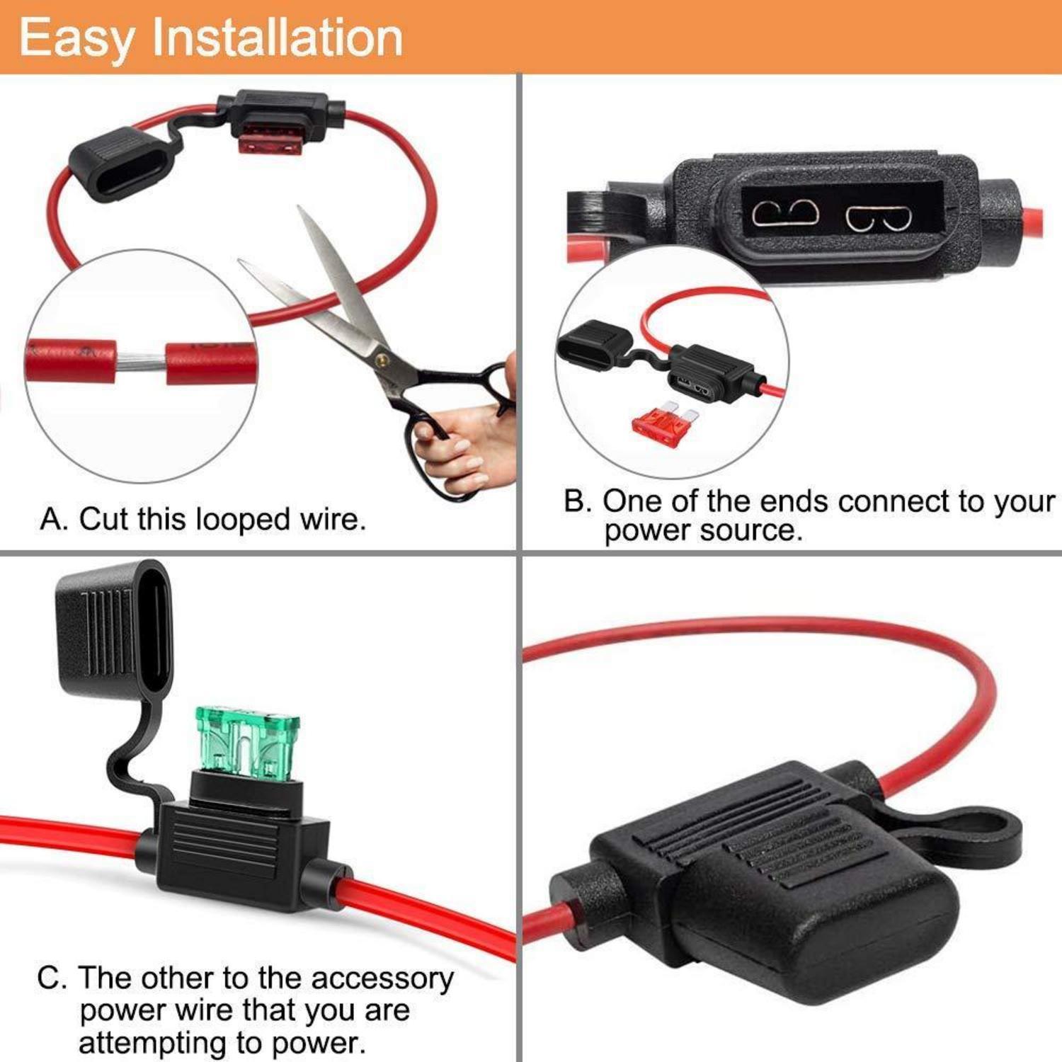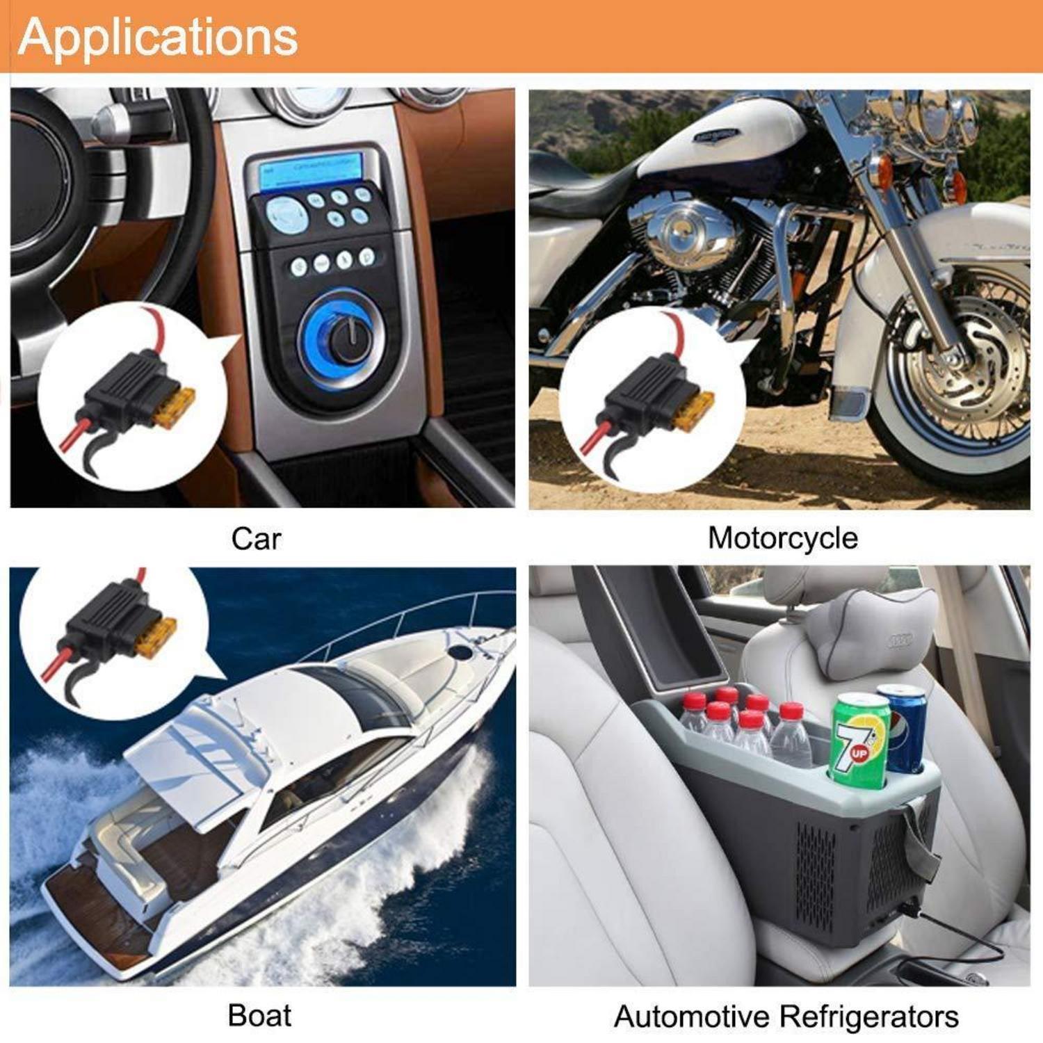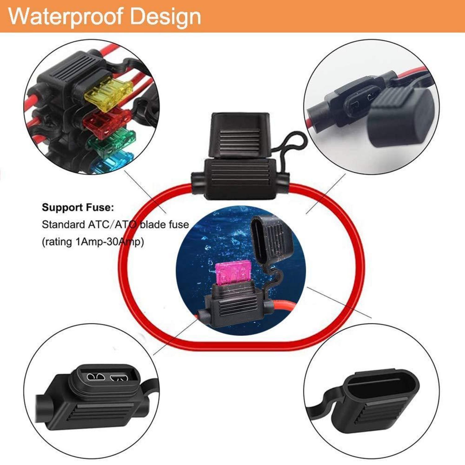 Die 6 Stück 14AWG kfz Sicherungshalter mit Kupferkabel und wasserdichter Kappe sind unverzichtbar, um Ihre elektrischen Systeme vor Überlast und Kurzschlüssen zu schützen. Die wasserdichte Kappe verbessert die Leistung des Sicherungshalters, indem sie Feuchtigkeit, Wasser und Staub abweist, was ihn ideal für den Einsatz in verschiedenen Fahrzeugen und Maschinen macht.
