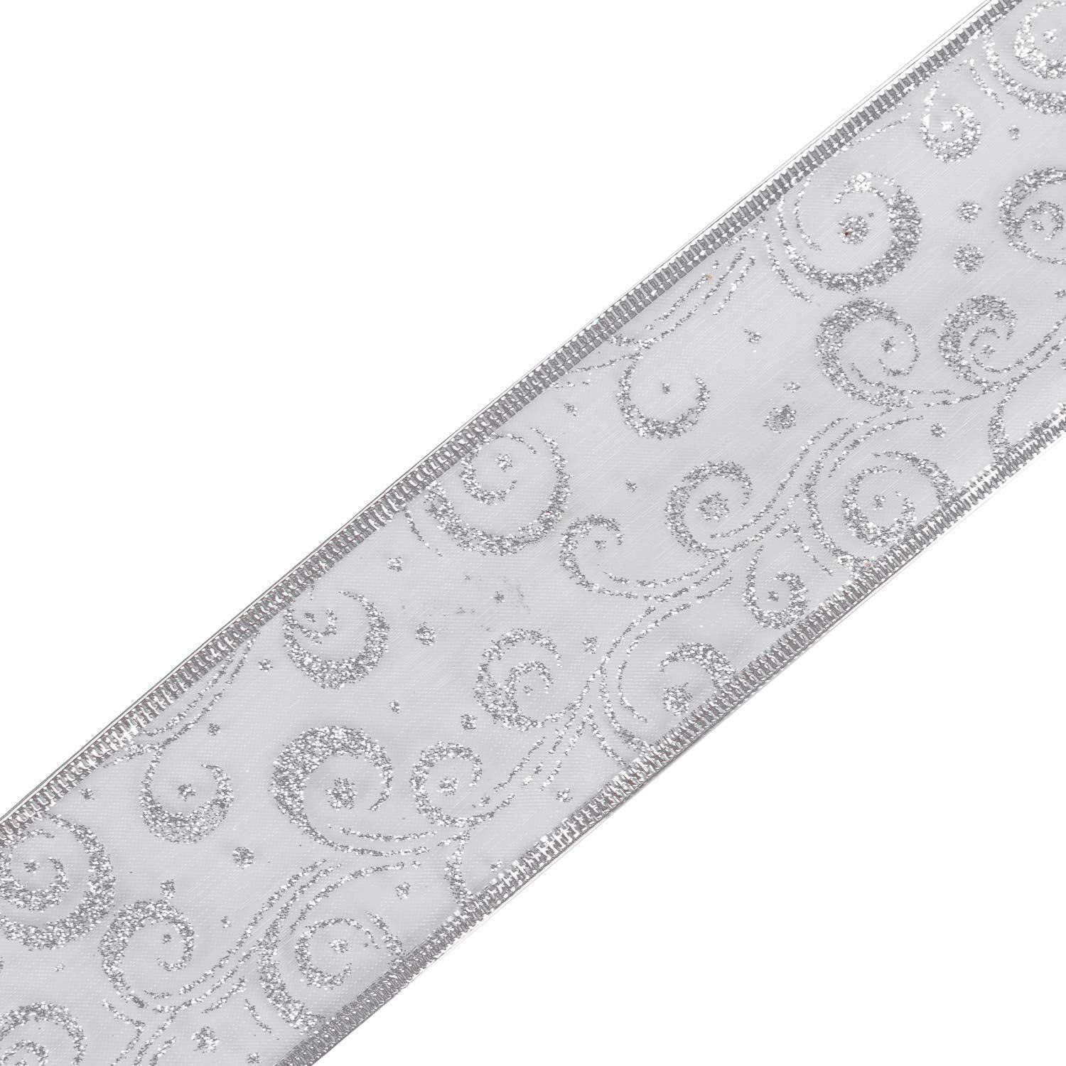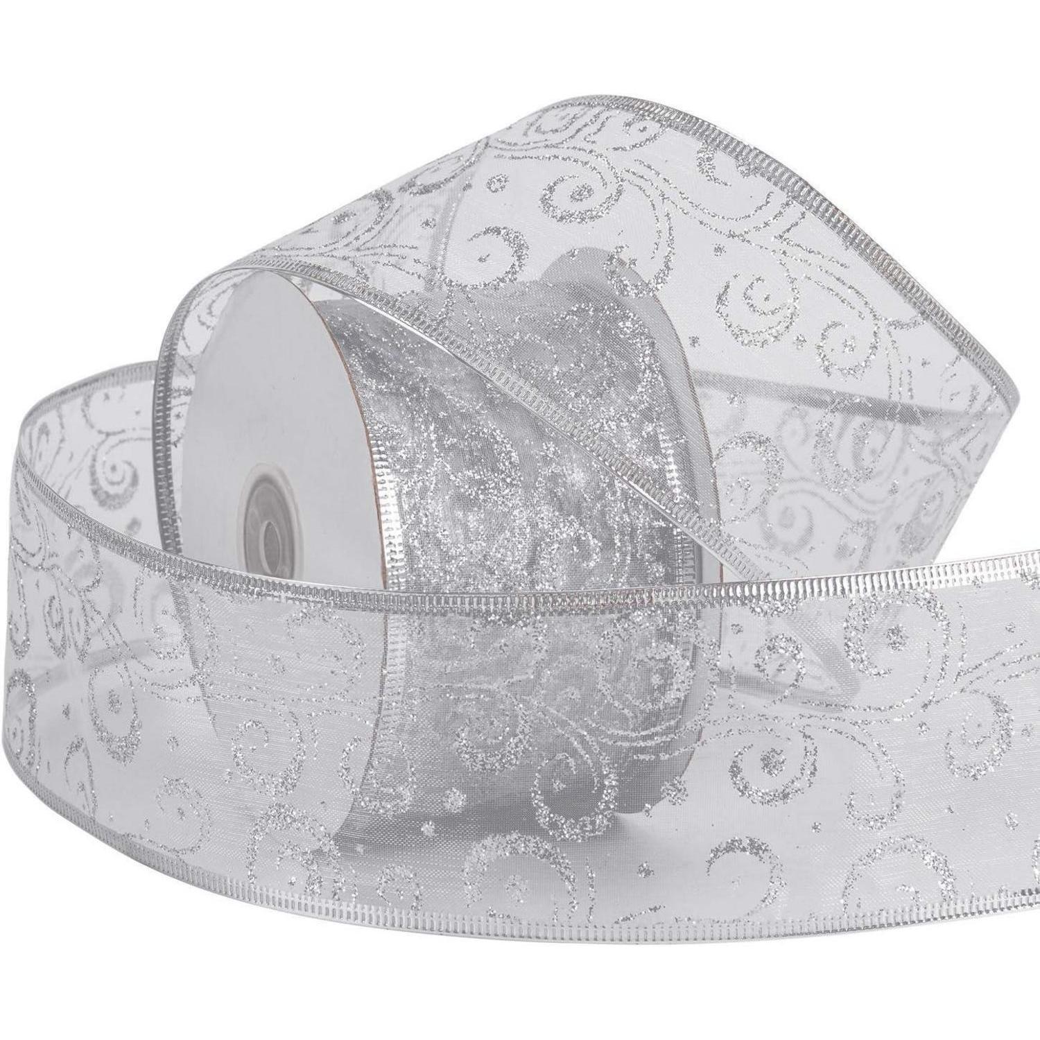 Silbernes Weihnachtsband mit Glitzer - 63 mm x 22 m