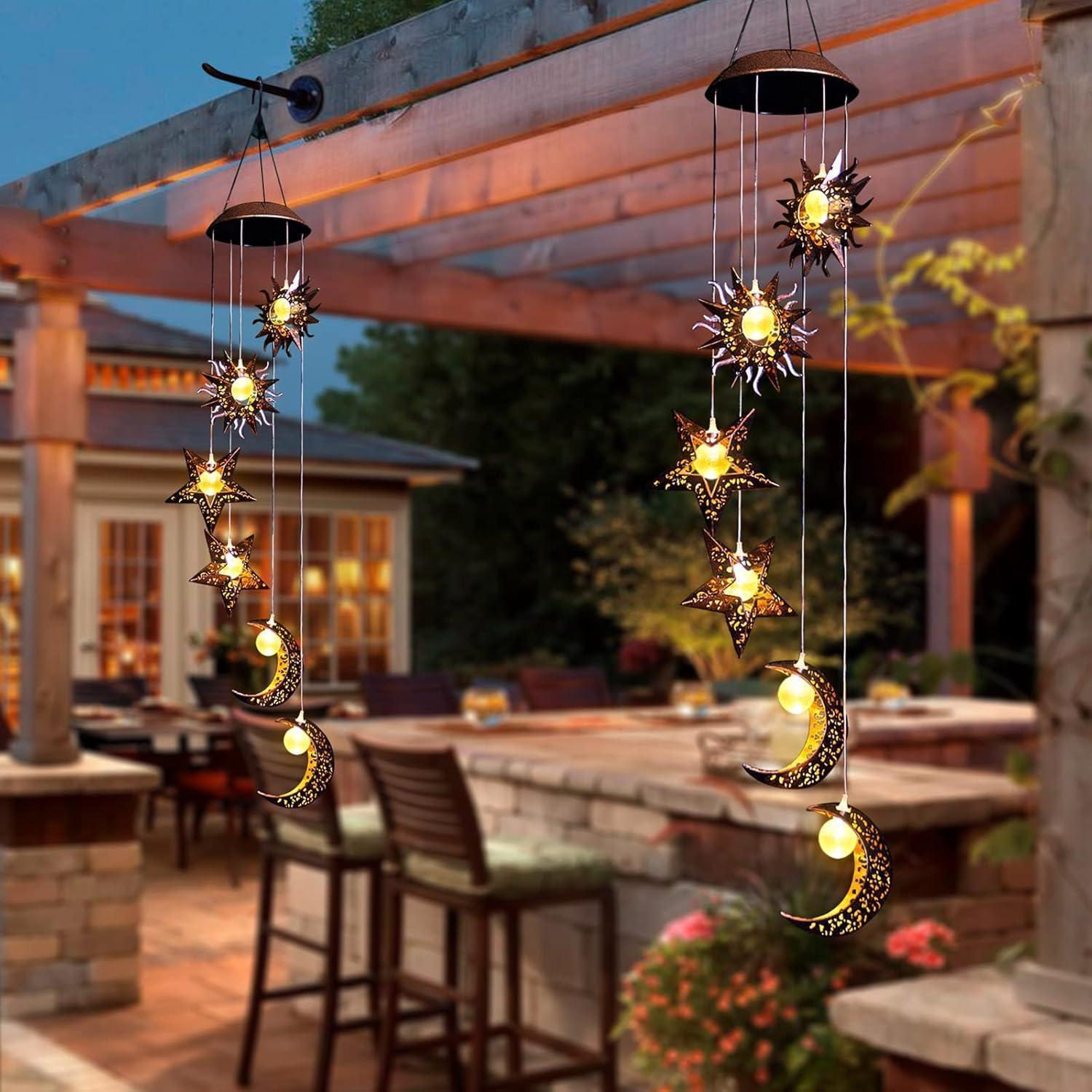 Solar LED Windspiele Sonne Mond Stern Garten Wasserdicht