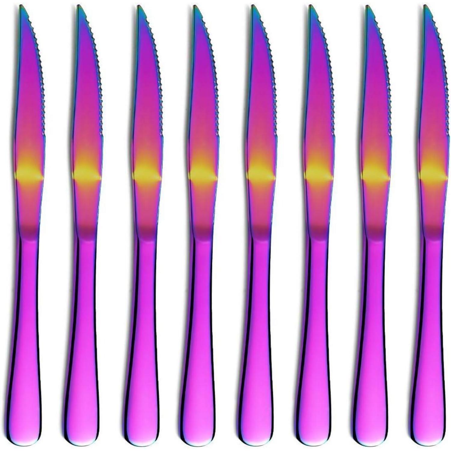 Steakmesser Set 8tlg Regenbogen Edelstahl Scharf Besteck