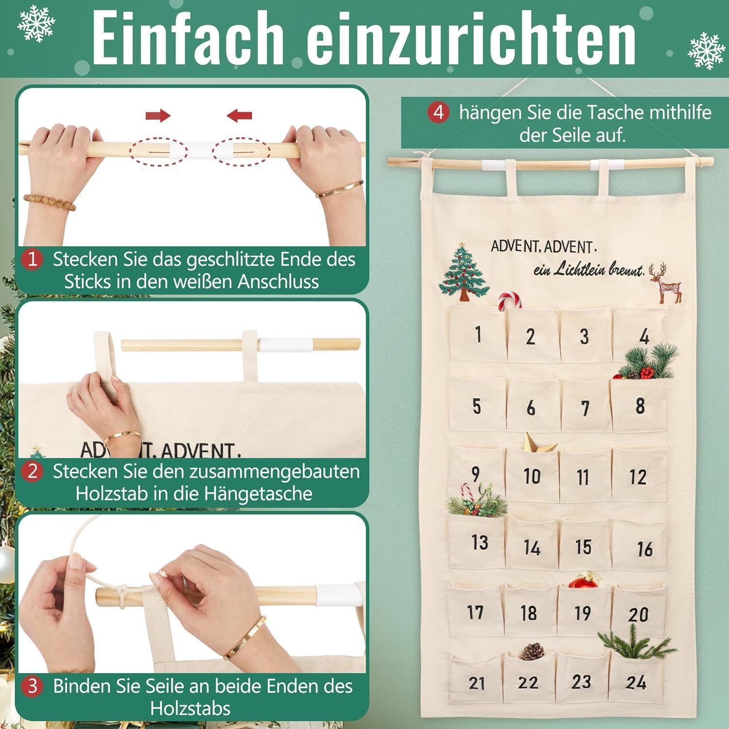 Stoff Adventskalender zum Befüllen mit 24 Taschen, bestickt
