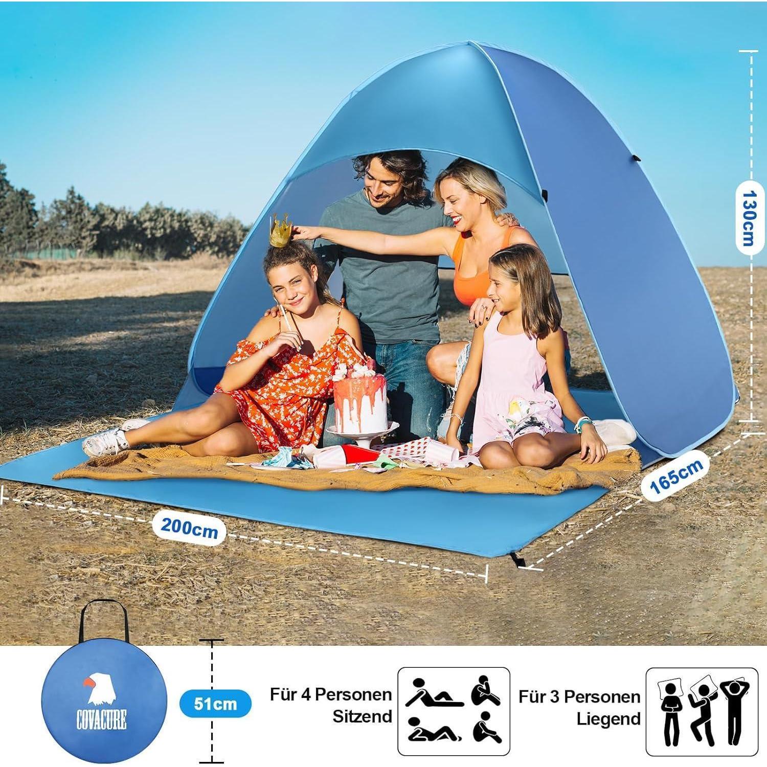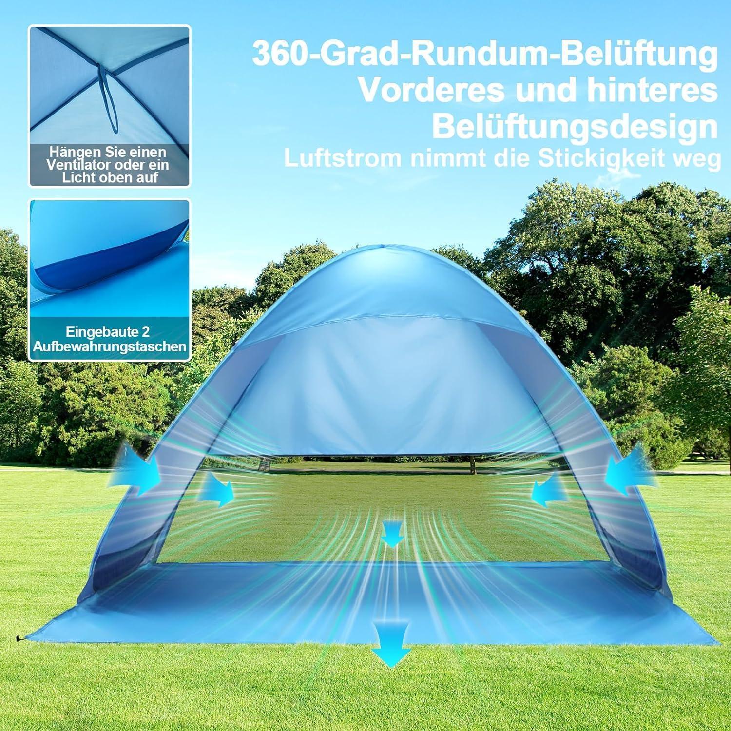 Strandmuschel Pop Up Strandzelt UV Schutz UPF 50+ Blau