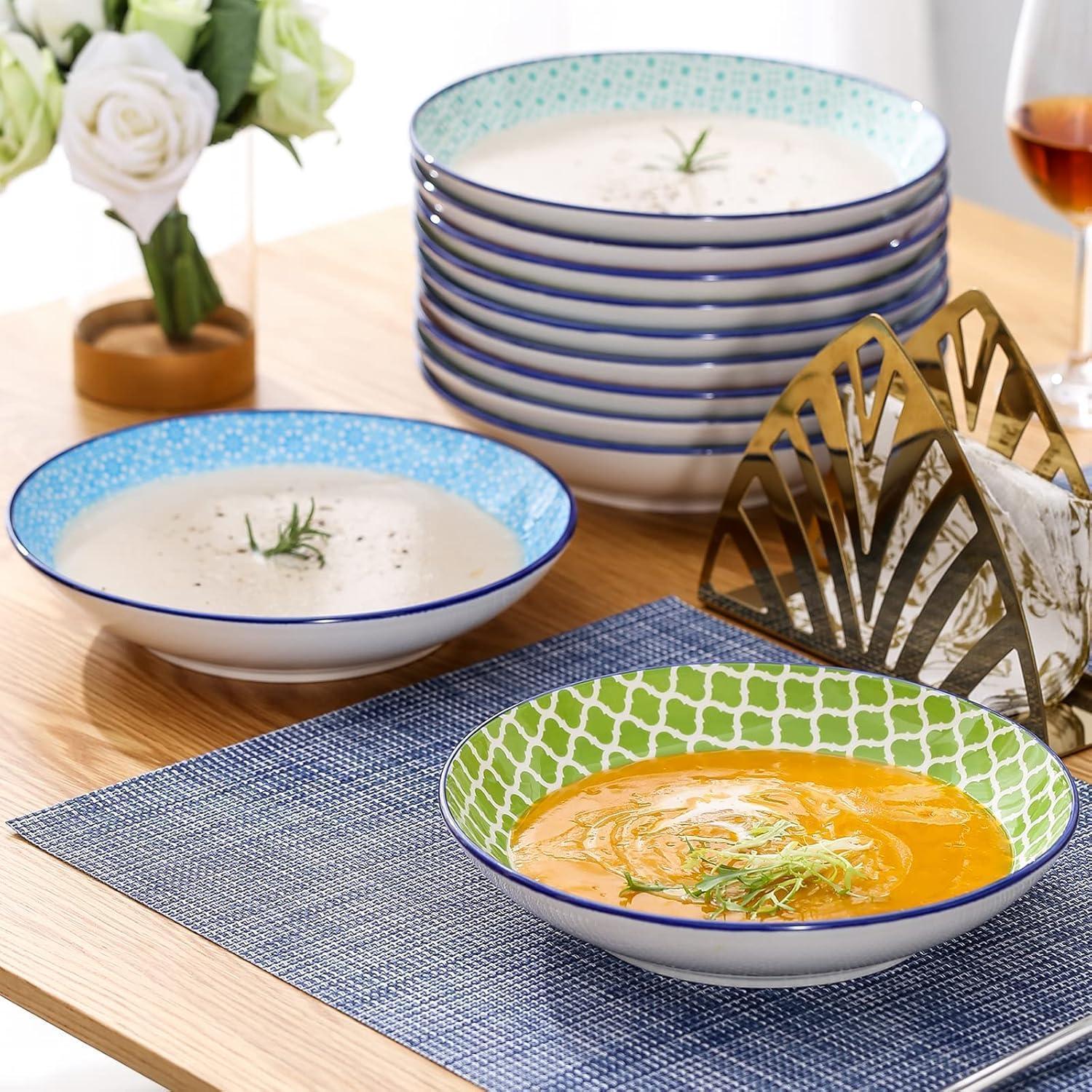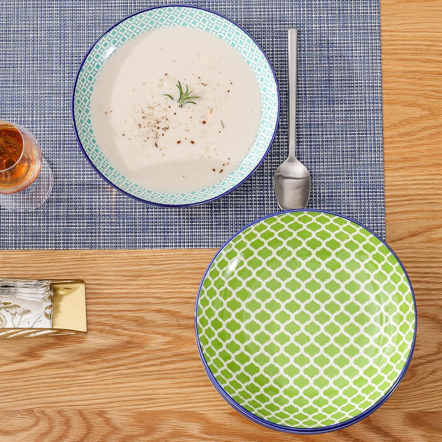 Komplette Kollektion: Jedes Set enthält 4 verschiedene Farben und Muster, die liebevoll und sicher verpackt sind. Mit einer Größe von 21,2 x 21,2 x 4,7 cm sind die Tiefteller ideal zum Servieren von Suppen, Eintöpfen oder anderen Gerichten.