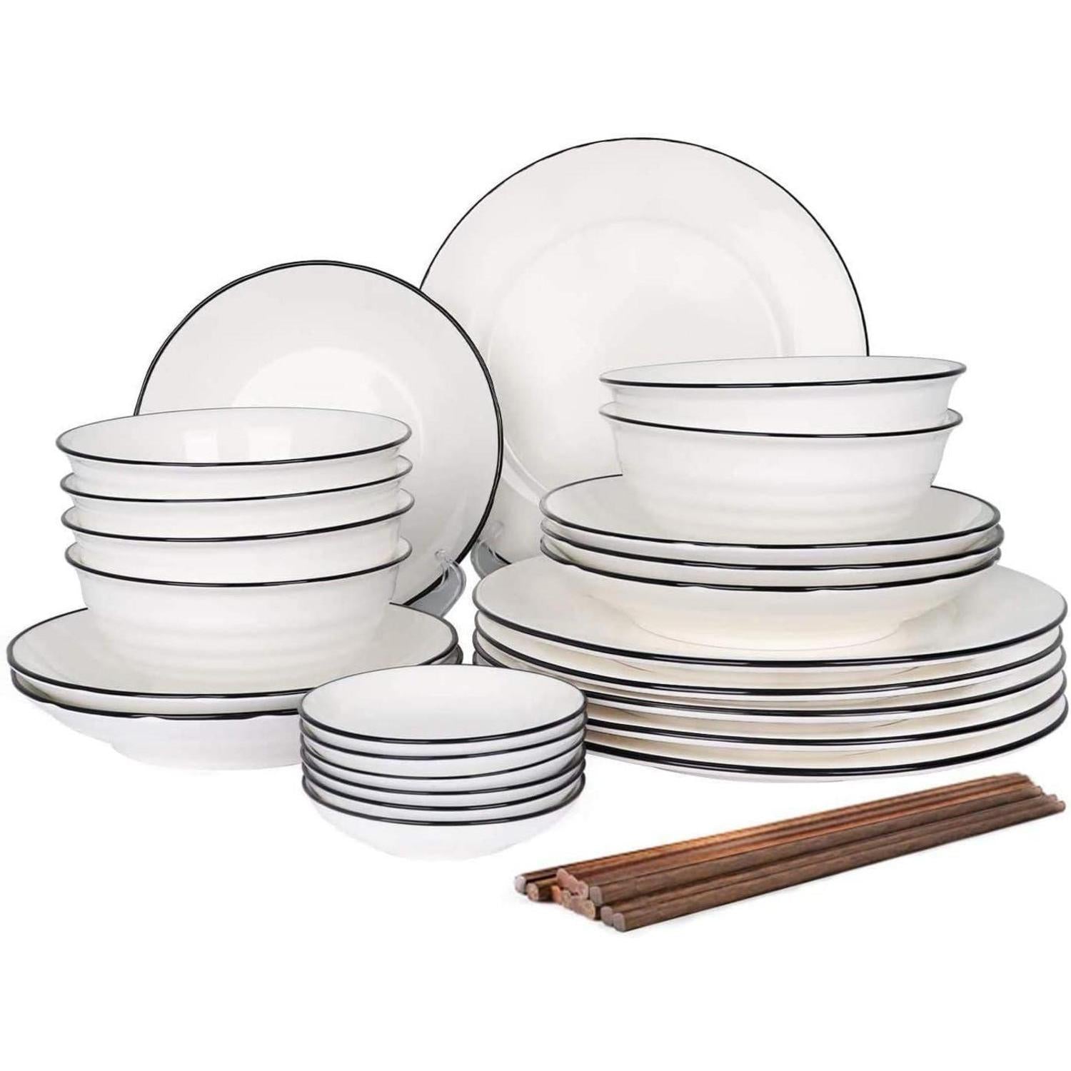 Tafelservice für 6 Personen - Vollständiges 30-teiliges Geschirrservice aus hochwertigem Porzellan