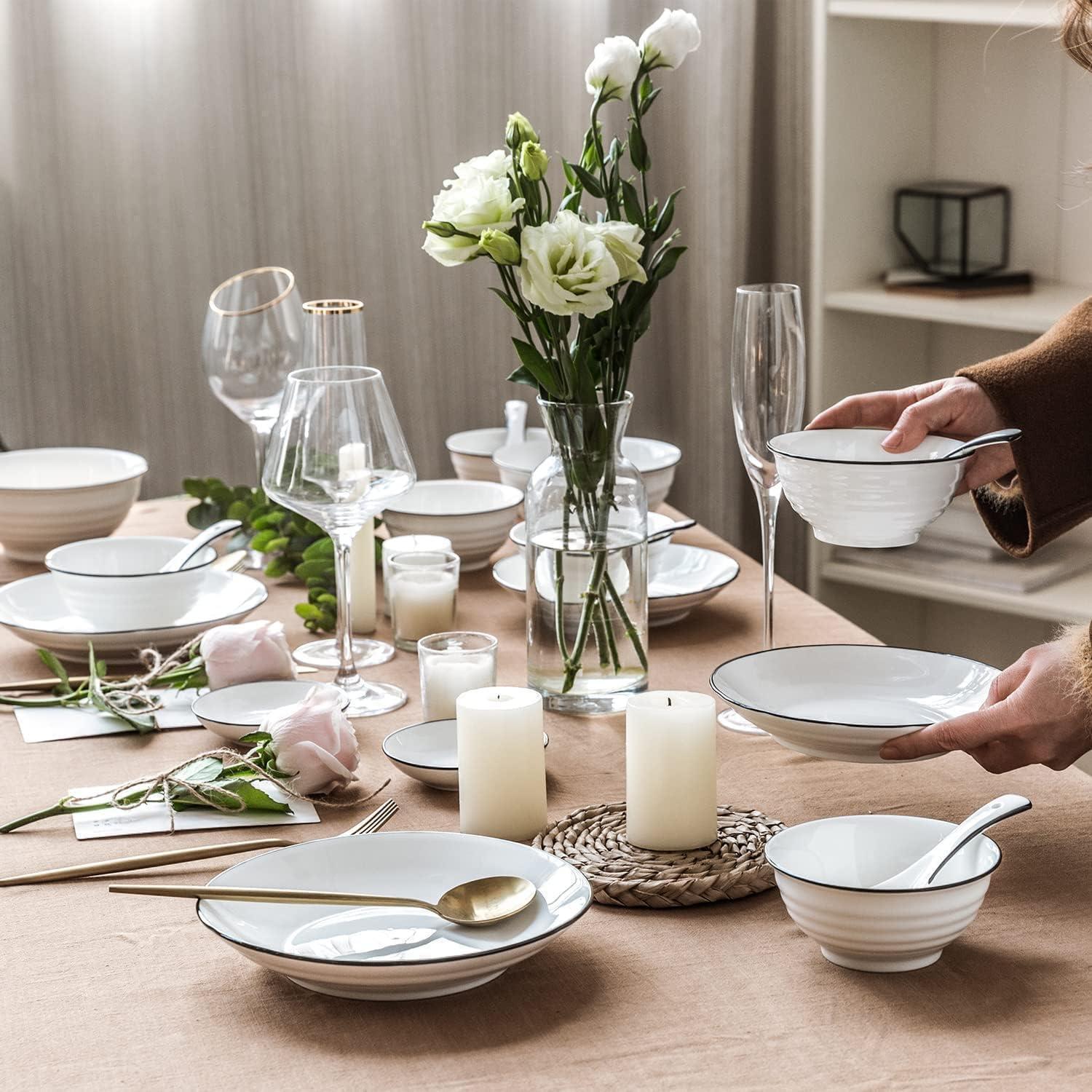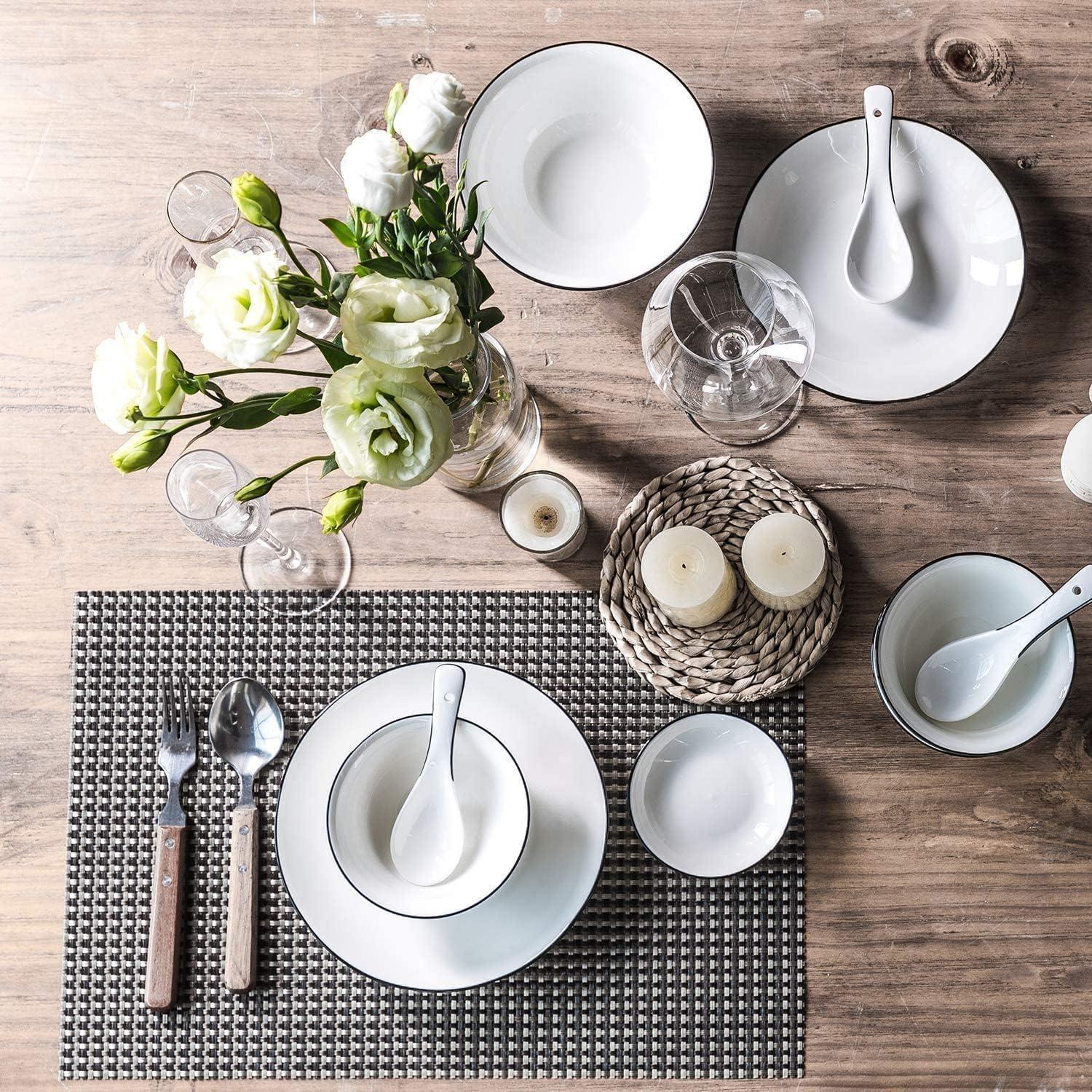 Das stilvolle Vintage-Design in Weiß mit eleganten schwarzen Linien verleiht Ihrem Esstisch eine elegante Note. Die Schalen, Essteller, Dipschalen und Essstäbchen sind nicht nur funktional, sondern auch eine ästhetische Bereicherung für Ihr Zuhause.