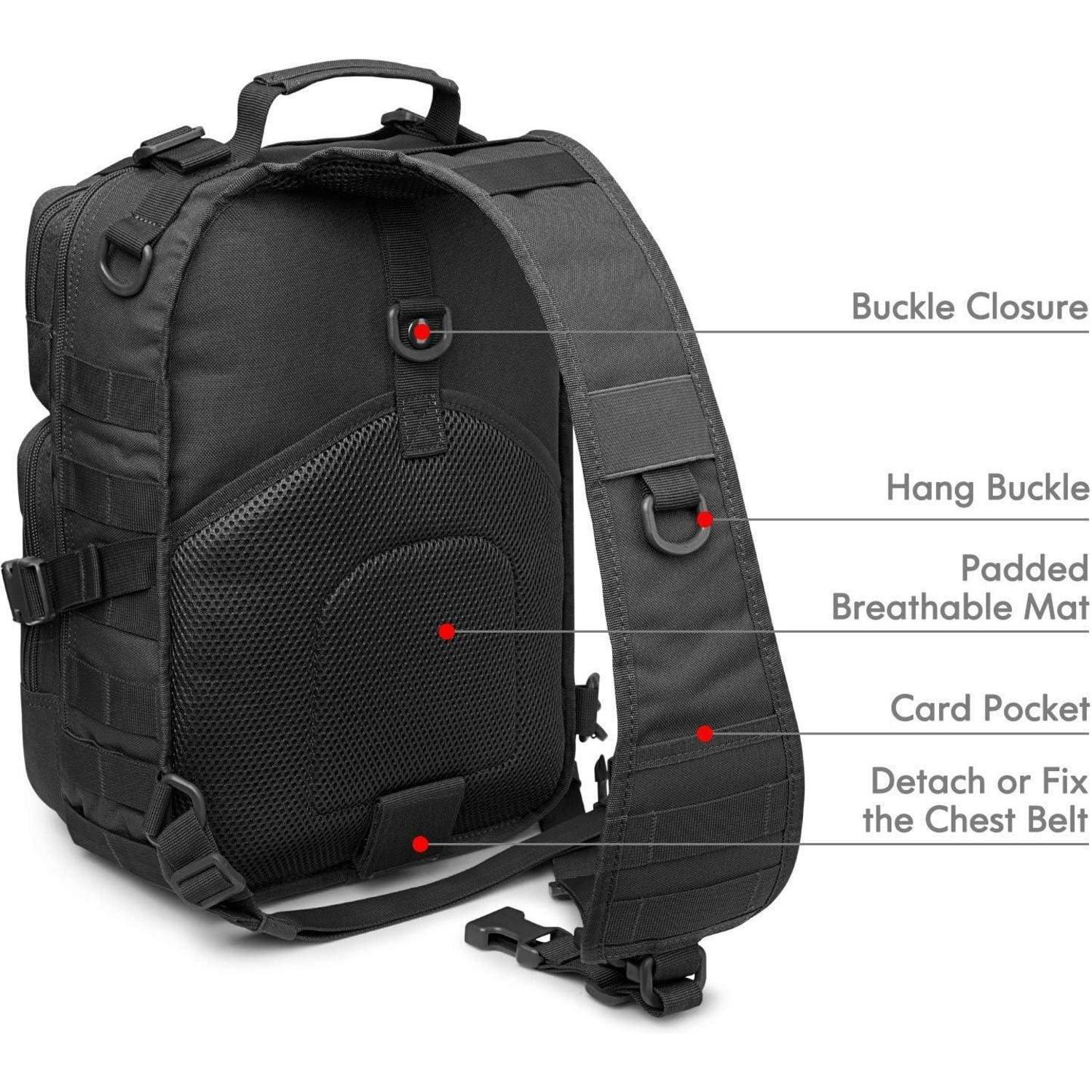 Der taktische Sling-Rucksack verfügt über ein Volumen von 15 Litern und bietet ausreichend Platz für Ihre persönlichen Gegenstände. Mit einem abnehmbaren Brustgurt eignet er sich perfekt für Aktivitäten wie Joggen oder Radfahren. Das MOLLE-System, das Frontlast-Kompressionssystem und der Y-Gurt ermöglichen es Ihnen, Ihre Ausrüstung sicher zu verstauen und schnell darauf zuzugreifen.