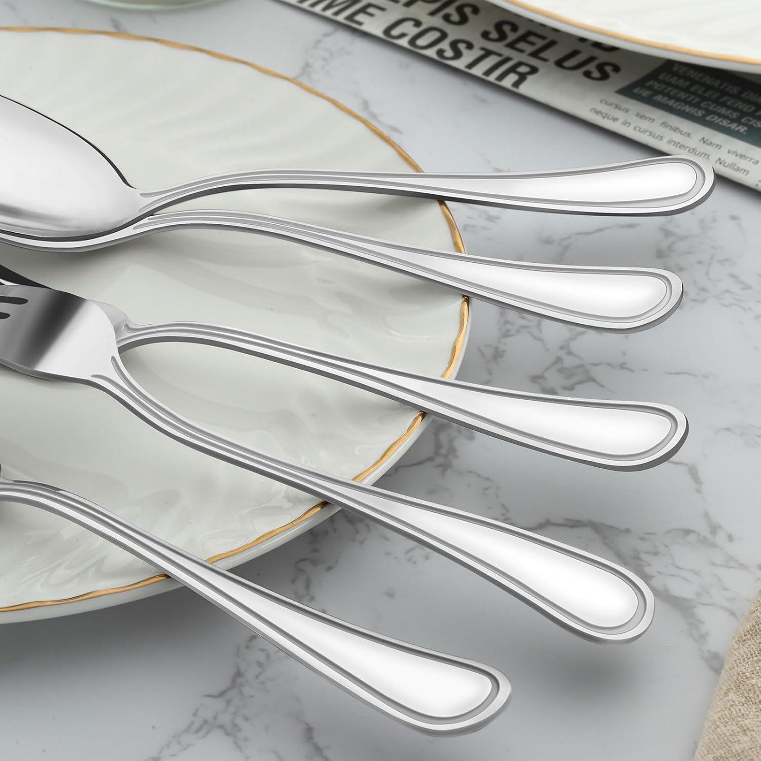 Die Teelöffel verfügen über ein exquisites gestreiftes Design, das jede Mahlzeit aufwertet und mit verschiedenen Tischdecken harmoniert. Der ergonomische Griff bietet den richtigen Gewichtsausgleich für maximalen Komfort beim Essen. Unser Teelöffel-Set ist spülmaschinenfest und bleibt auch nach mehrmaligem Spülen makellos. Es eignet sich perfekt für Suppen, Desserts, Joghurts, Eiscreme, Müsli und vieles mehr. Dieses Set ist auch eine großartige Geschenkidee für besondere Anlässe wie Weihnachten.