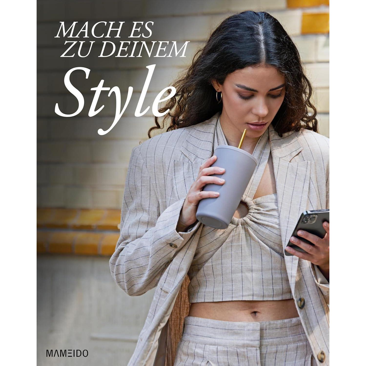 Thermobecher mit Strohhalm 470ml doppelwandig isoliert