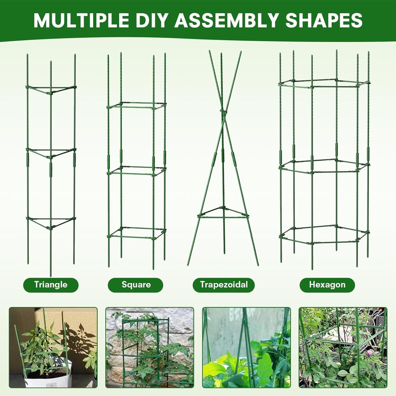 Der Aufbau der Pflanzenkäfige um Setzlinge oder kleine Starterpflanzen herum ist kinderleicht, sodass sie bereit sind, wenn die Pflanzen zu wachsen beginnen. Mit insgesamt sechs Pflanzenkletterhilfsrahmen können Sie verschiedene Formen von Pflanzenkäfigen erstellen, die sich dem Wachstum anpassen, wie Quadrate, Sechsecke oder Tomatentürme.
