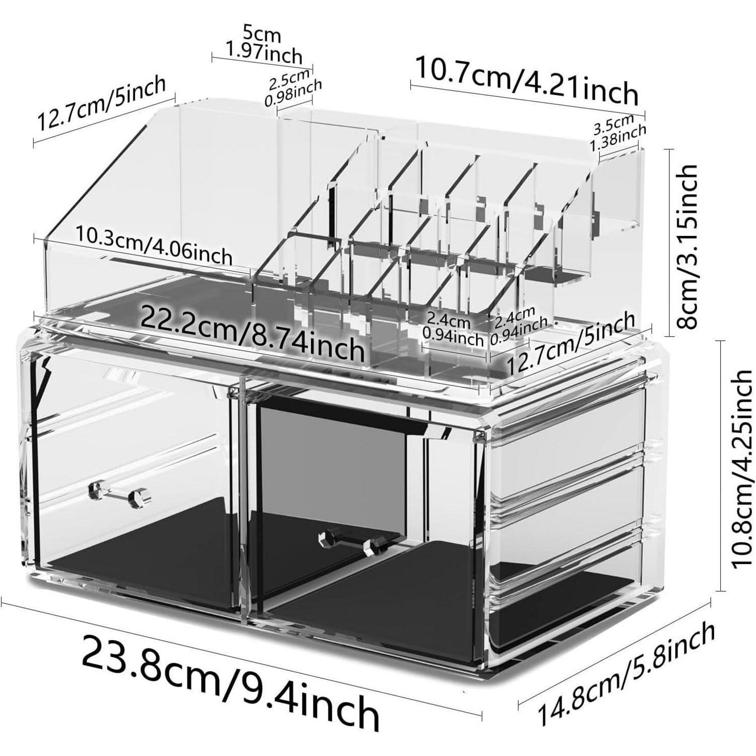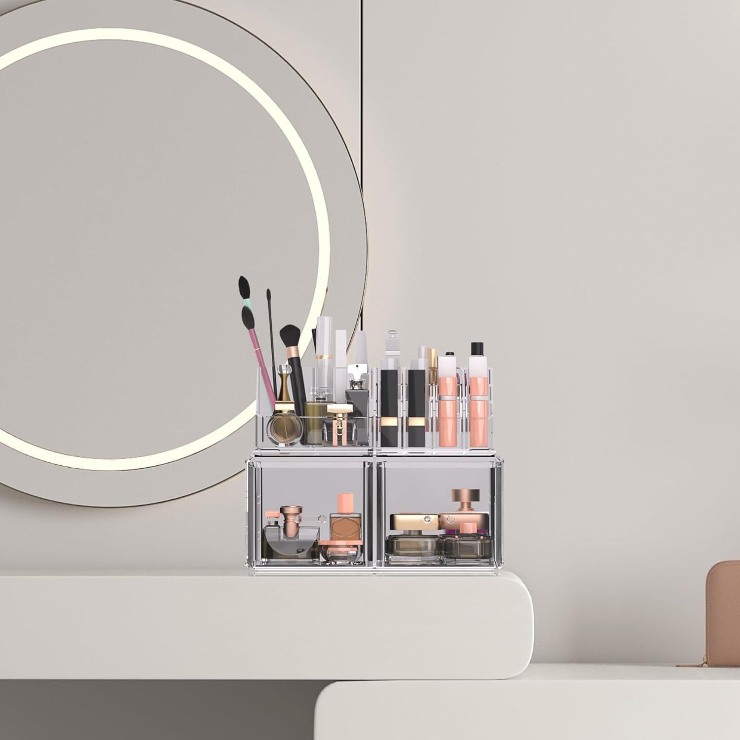 Transparenter Makeup Organizer 2 Lagen Kosmetik Aufbewahrungsbox 2 Schubladen