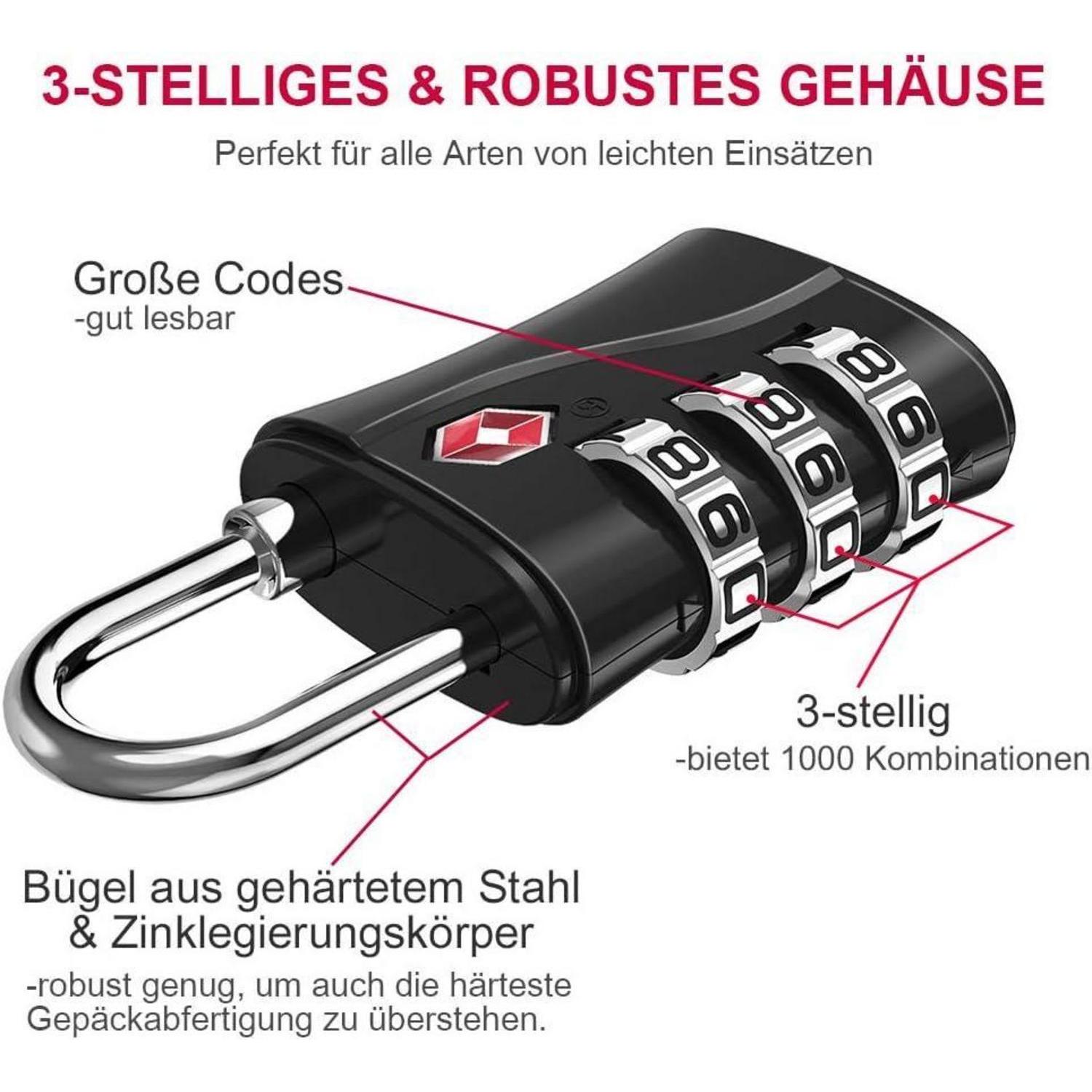 TSA Kofferschloss Zahlencode 3-stellig, Gepäckschloss