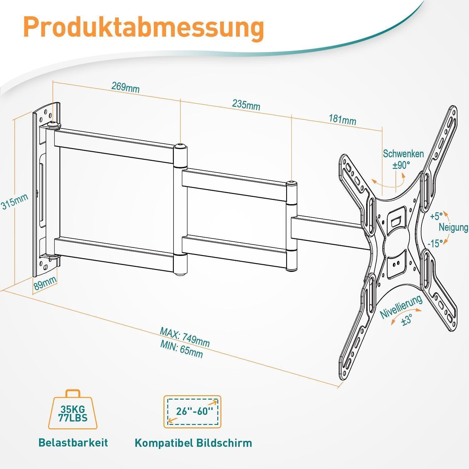 TV Wandhalterung für 26-60 Zoll Fernseher, Eckhalterung mit