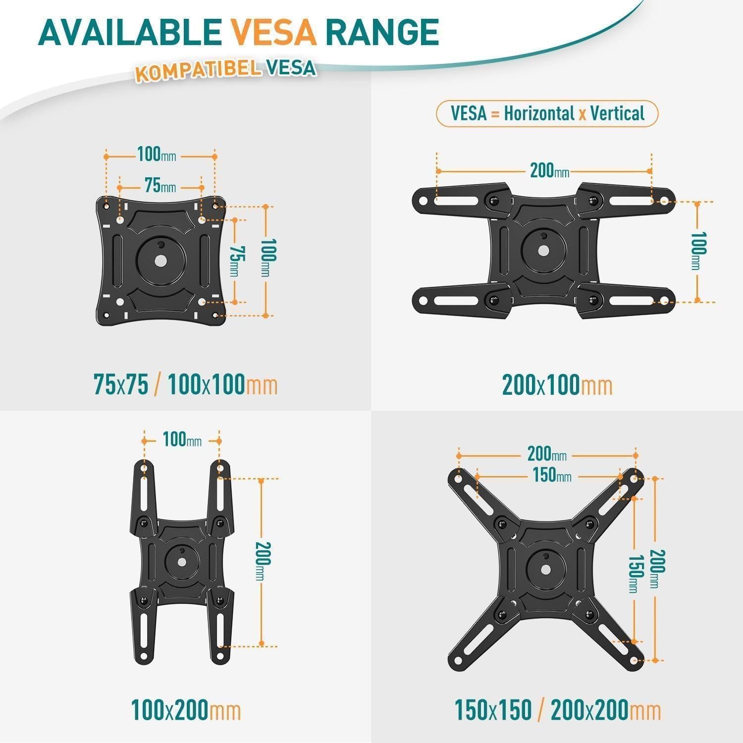 Universelle Kompatibilität - Geeignet für die meisten 14-42 Zoll Flach- und Curved-Fernseher bis zu 15kg, mit VESA von 75x75mm bis 200x200mm.