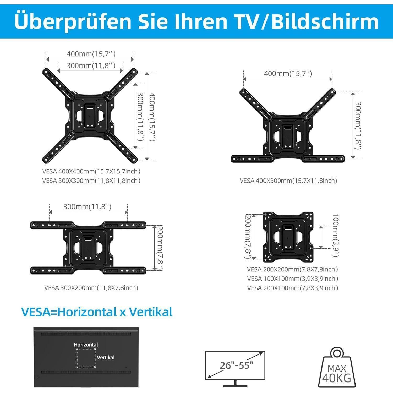 Universell einsetzbar für die meisten 26-55 Zoll LED/LCD-Fernseher, VESA 400x400mm