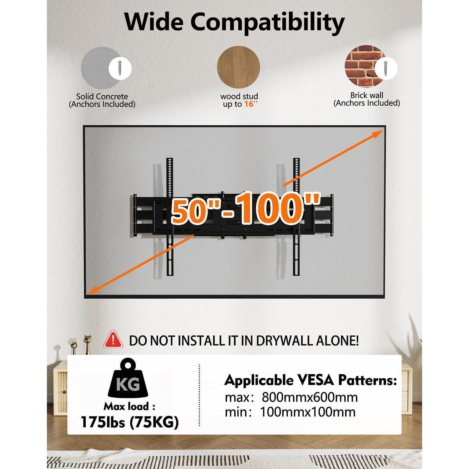 Weitgehende Kompatibilität: Passend für die meisten 37-75 Zoll Flach- und Curved-LCD-LED-Fernseher mit VESA-Montagemustern von 100x100mm bis 600x400mm.