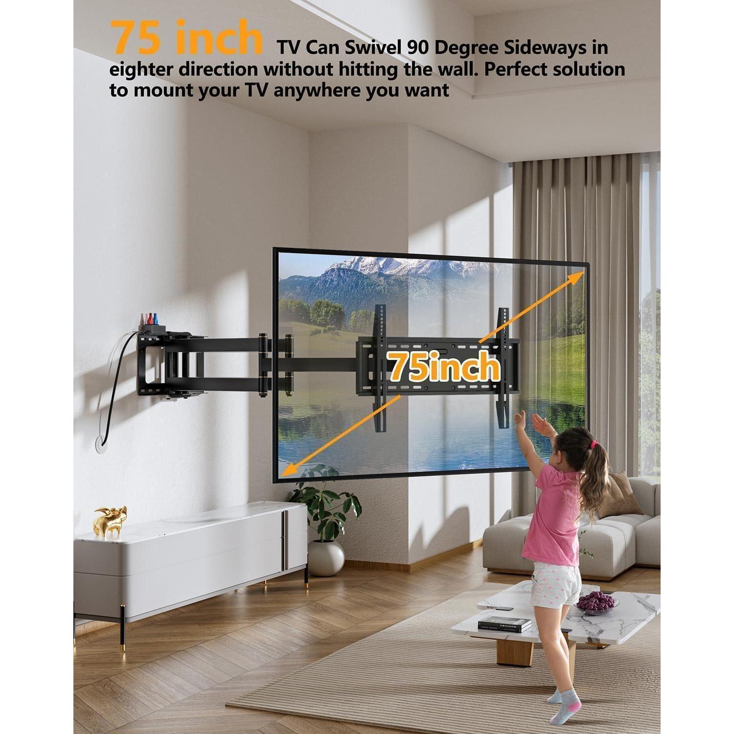 Mit einem beeindruckenden Schwenkbereich von 45 Grad kann die TV Halterung Fernseher um bis zu 465mm von der Wand entfernt werden, was eine optimale Betrachtung aus verschiedenen Blickwinkeln ermöglicht. Gleichzeitig kann die Halterung bis auf 75mm zurückgezogen werden, um Platz zu sparen und eine ordentliche Wohnatmosphäre zu schaffen.
