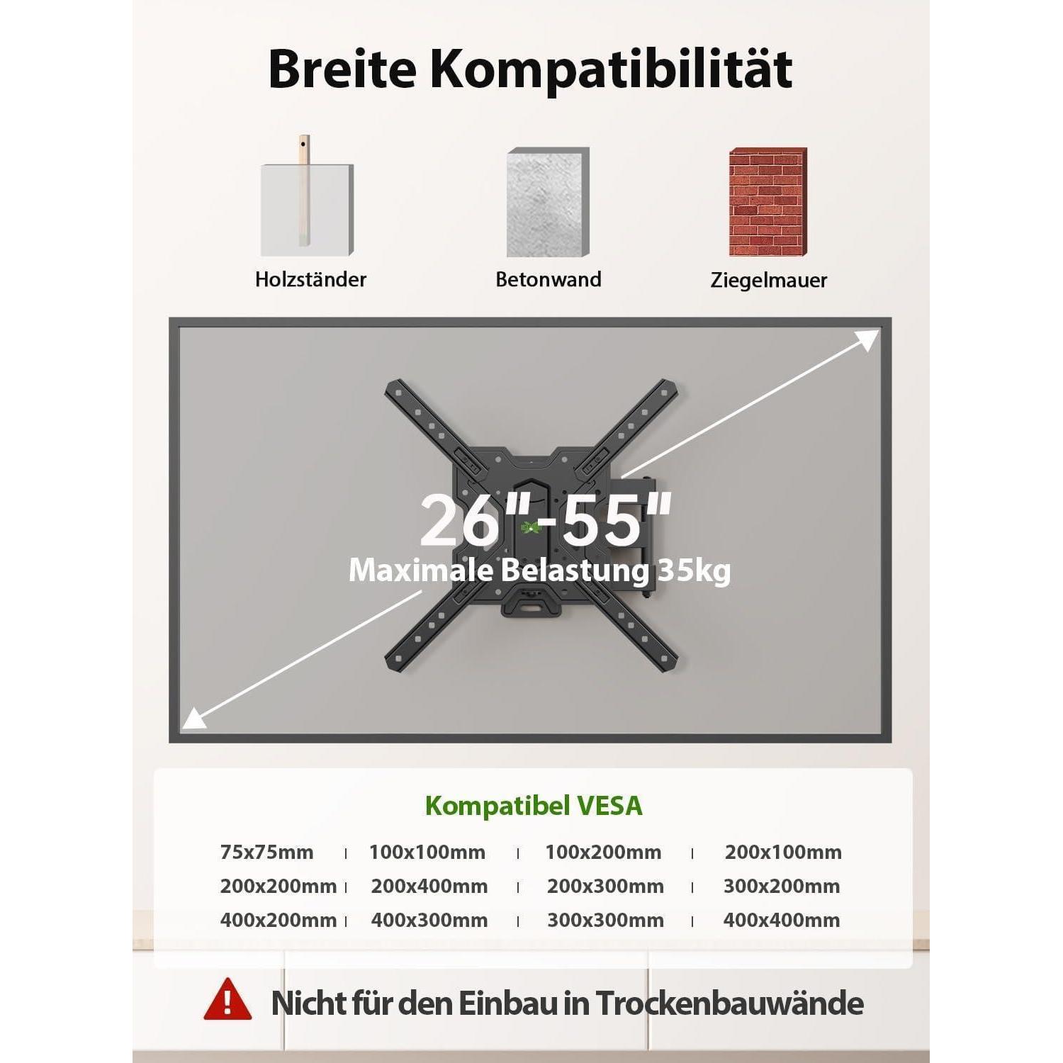 USX-MOUNT TV Wandhalterung Schwenkbar Neigbar für 26-55 Zoll LED, LCD, OLED, 4K Fernseher, max.VESA 400x400mm, Universal Wandhalterung Ausziehbar Halterung