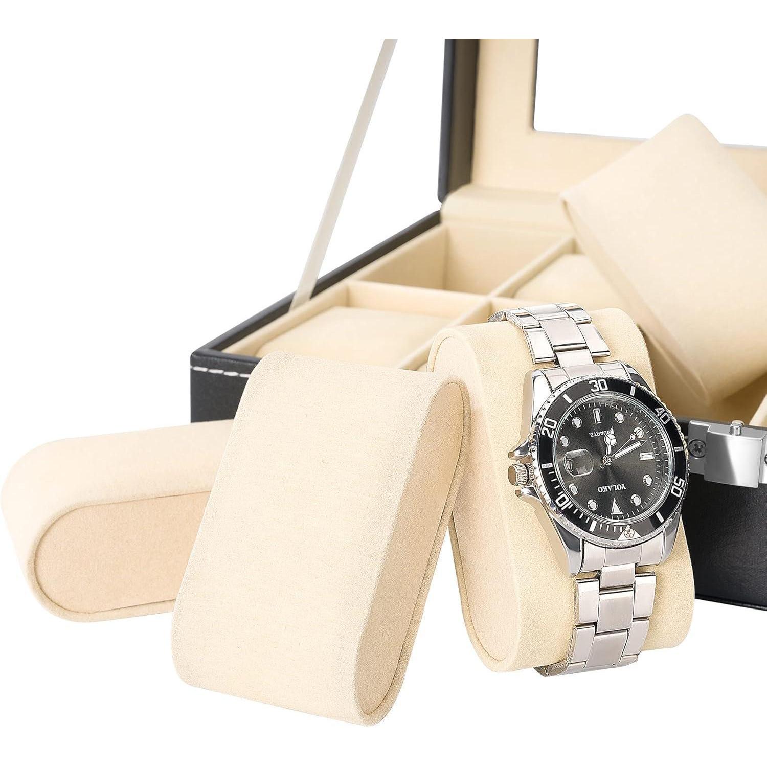 Uhrenbox mit Glasdeckel Schwarz PU-Leder 10 Uhren 25x20x8