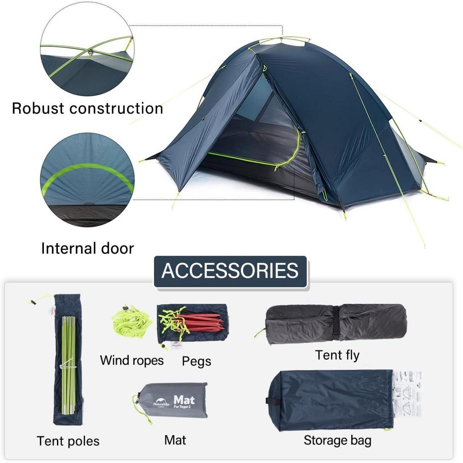 Egal, ob du dich vor UV-Strahlen, starkem Wind oder Regen schützen möchtest, das Naturehike Taga Zelt ist dein verlässlicher Begleiter in der Natur. Genieße den weiten Raum im Inneren, um dich wohl zu fühlen und alle deine Outdoor-Essentials unterzubringen. Wenn du dich für dieses Zelt entscheidest, wählst du Qualität, Komfort und Funktionalität – durch und durch.