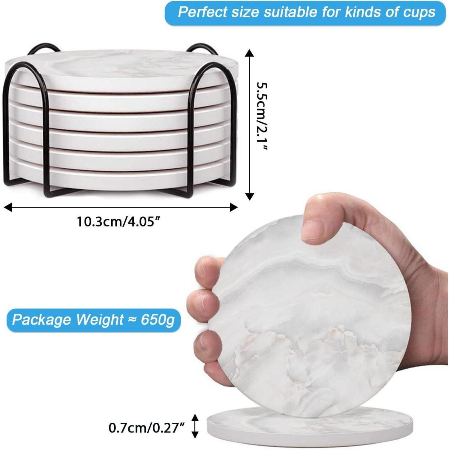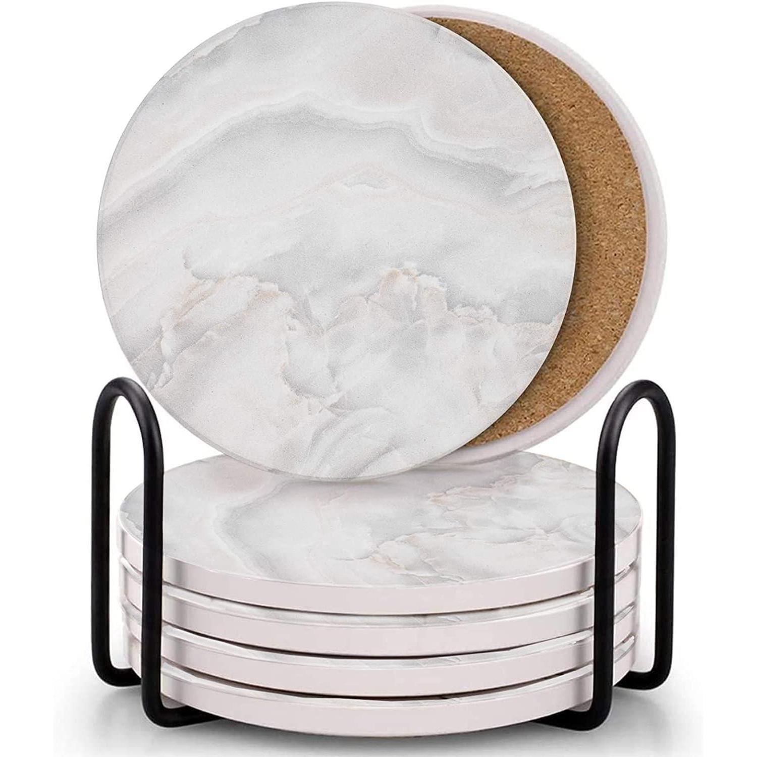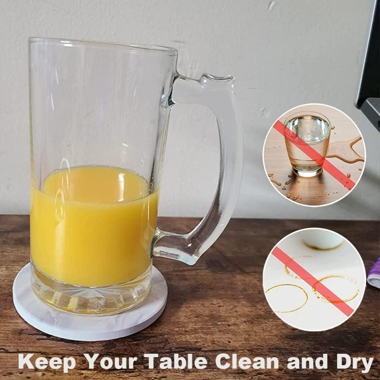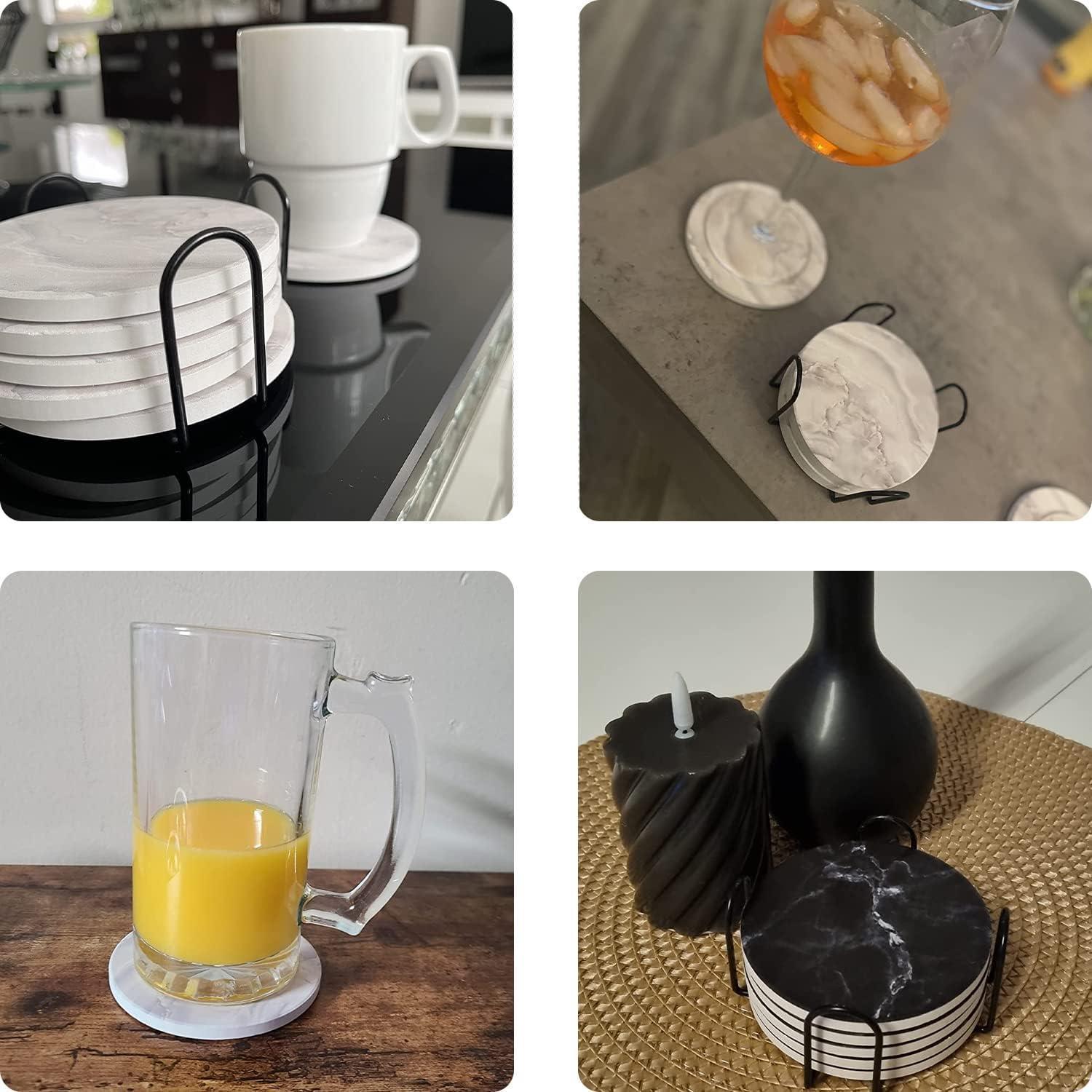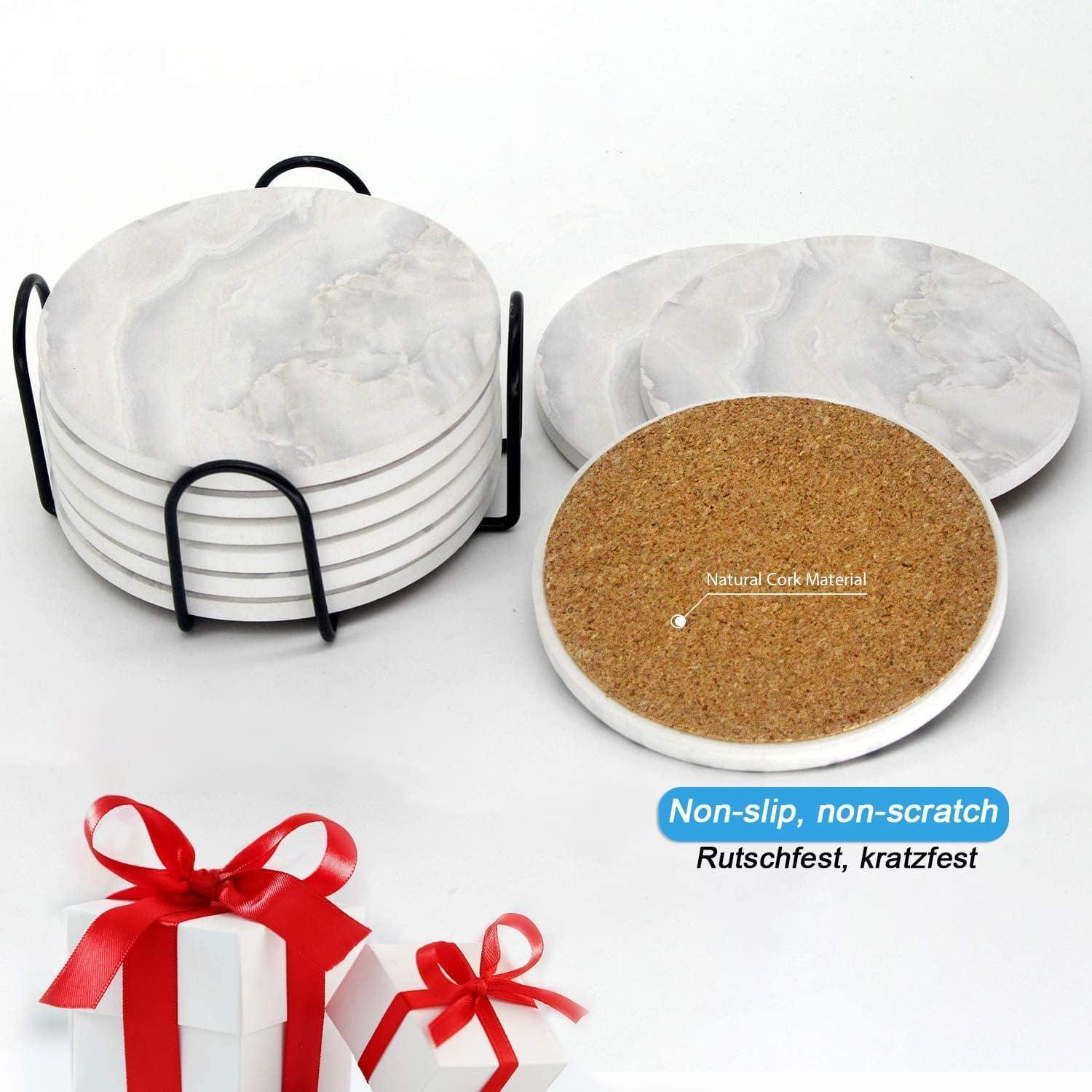Die rutschfeste Korkbasis schützt Ihre Möbel vor Kratzern und sorgt dafür, dass die Untersetzer sicher an ihrem Platz bleiben. Mit einer Größe von 4,05 Zoll (10,2 cm) passen diese Untersetzer perfekt unter Weinflaschen, Weingläser, Kaffeebecher und mehr. Das Marmor-Design mit mattierter Glasur macht sie nicht nur funktional, sondern auch dekorativ und eine tolle Geschenkidee für Freunde und Familie.
