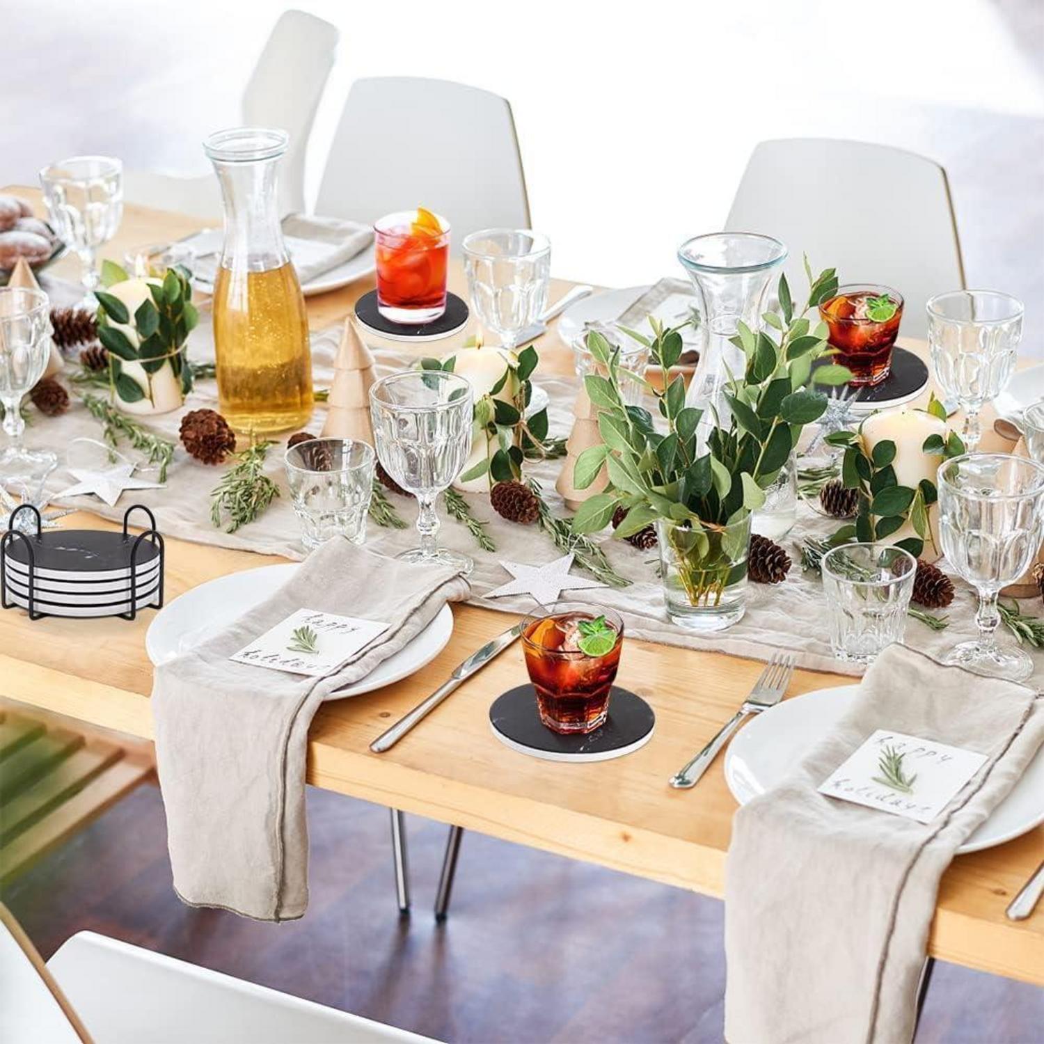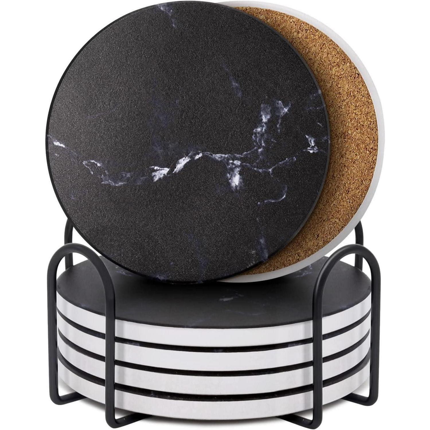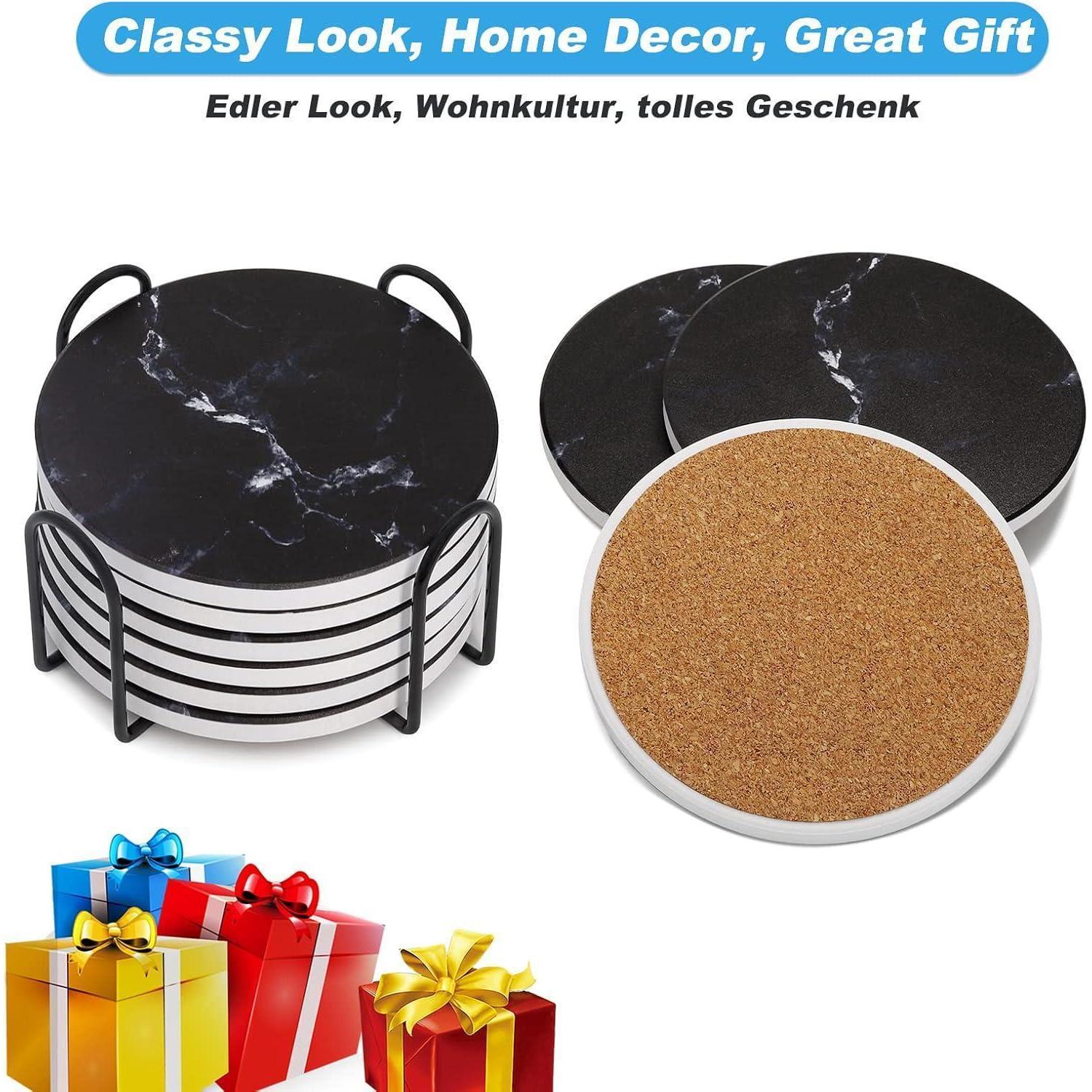 Untersetzer Gläser 6er Set Marmor mit Kork-Rückseite Schwarz