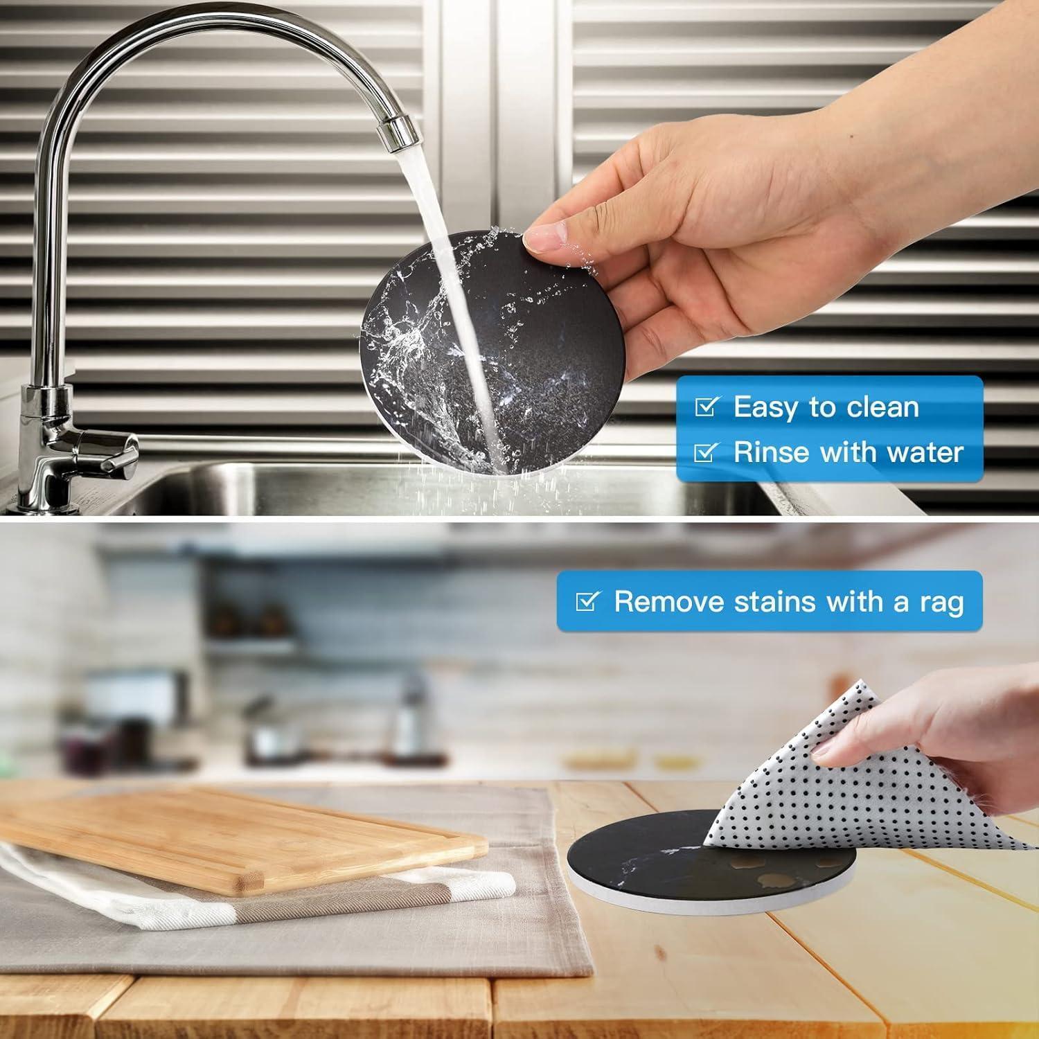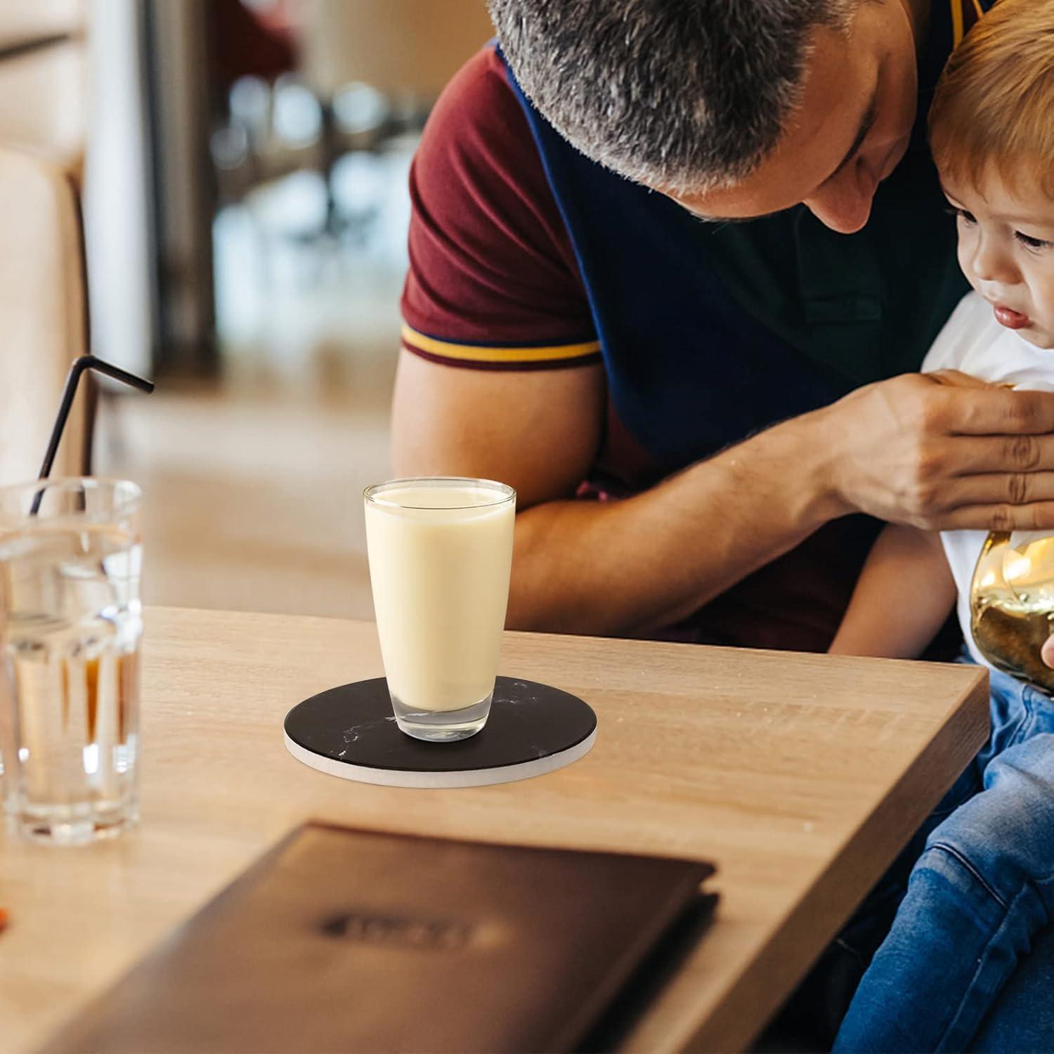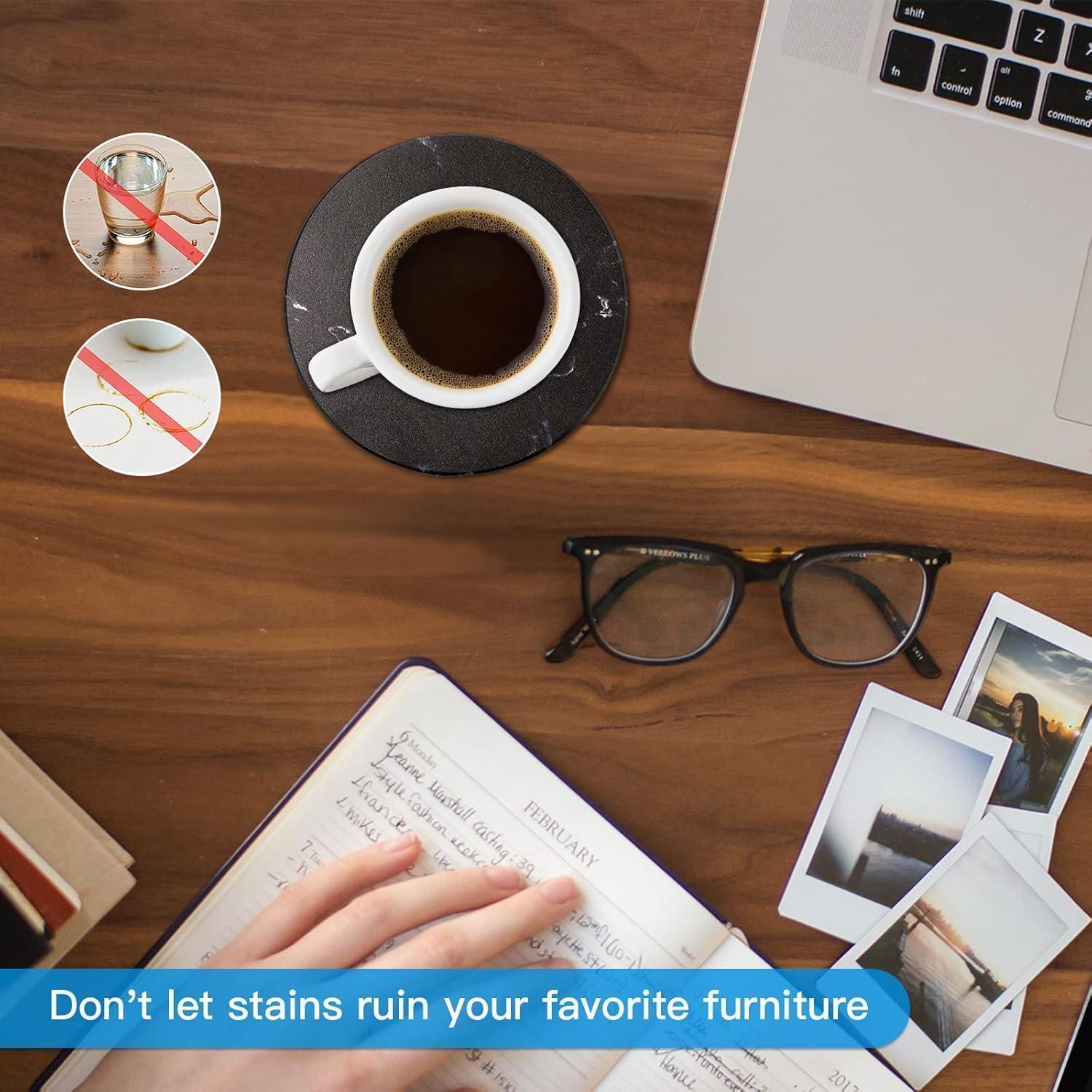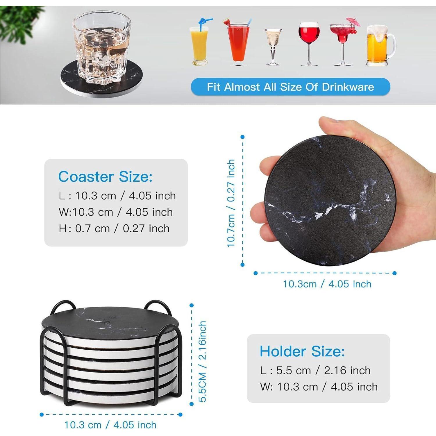 Untersetzer Gläser 6er Set Marmor mit Kork-Rückseite Schwarz