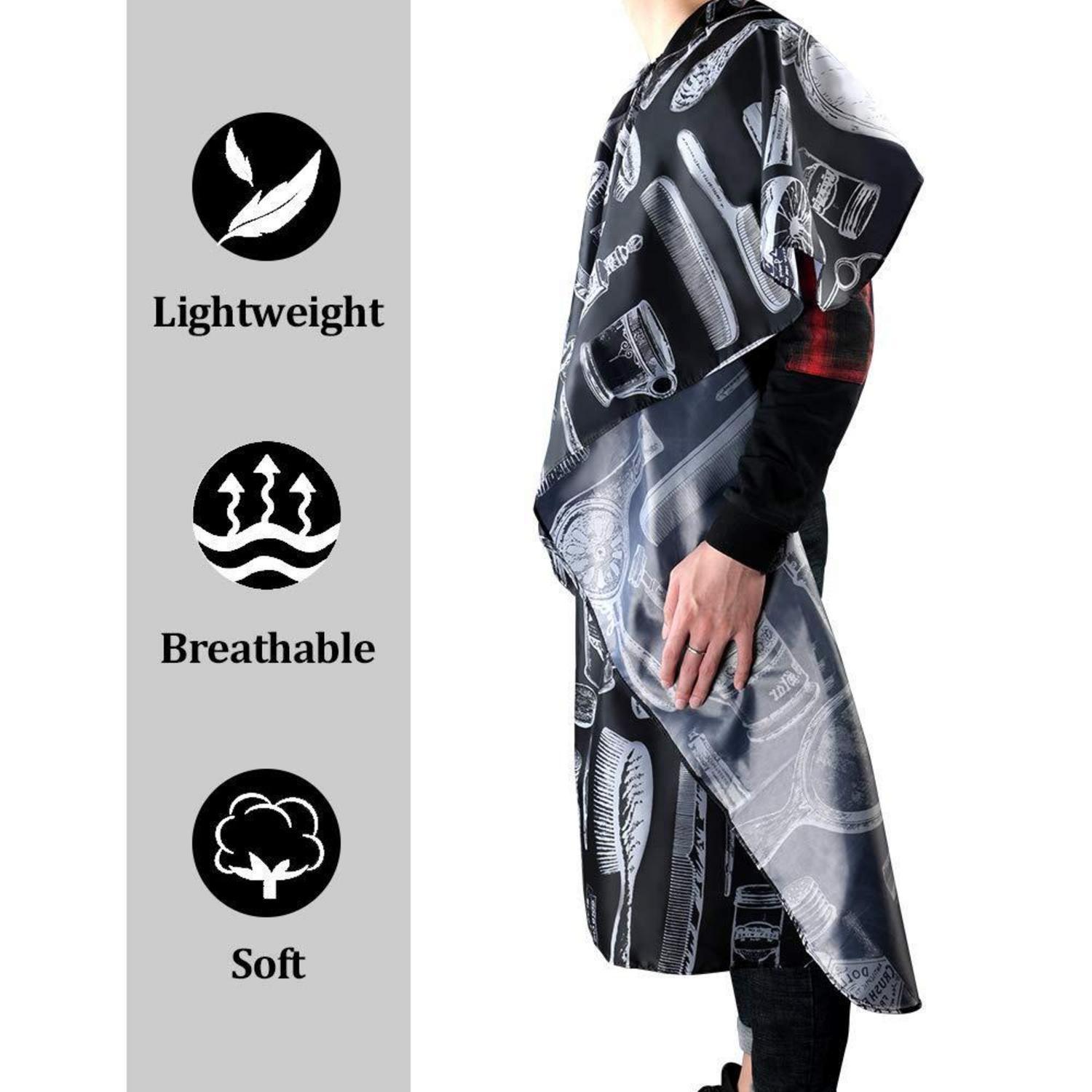 Der Haarschneideumhang schützt effektiv Ihre Kleidung vor Farbrückständen, Haaren und anderen Verschmutzungen während des Friseurprozesses. Das strapazierfähige Nylonmaterial sorgt dafür, dass der Umhang weich, glatt und pillingfrei bleibt. So können Sie sich voll und ganz auf die Haarpflege konzentrieren, ohne sich um die Reinigung oder den Zustand Ihres Umhangs sorgen zu müssen.