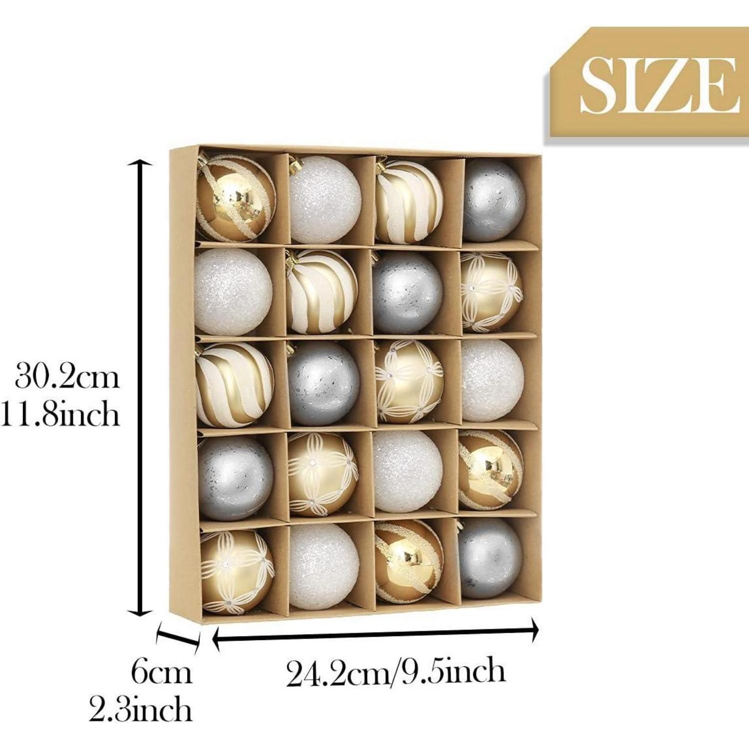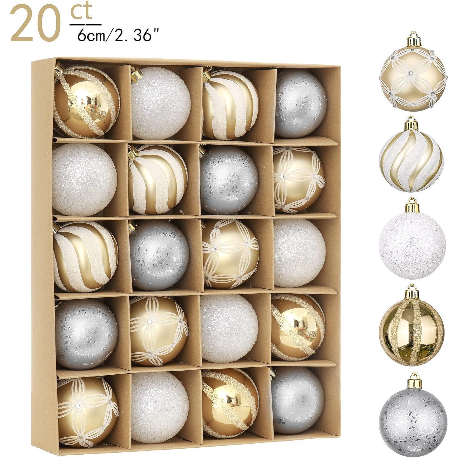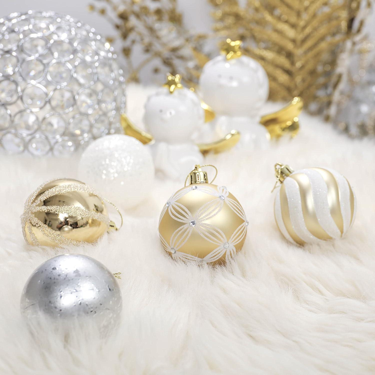 Mit dem Valery Madelyn Weihnachtskugeln Set erhalten Sie 20 kunststoff Christbaumkugeln in der Größe von 6cm. Diese eleganten Weihnachtskugeln in Gold und Weiß sind perfekte Geschenke für Freunde und sind ideal für Weihnachtsdekorationen, Partys, Geburtstage und Feste.