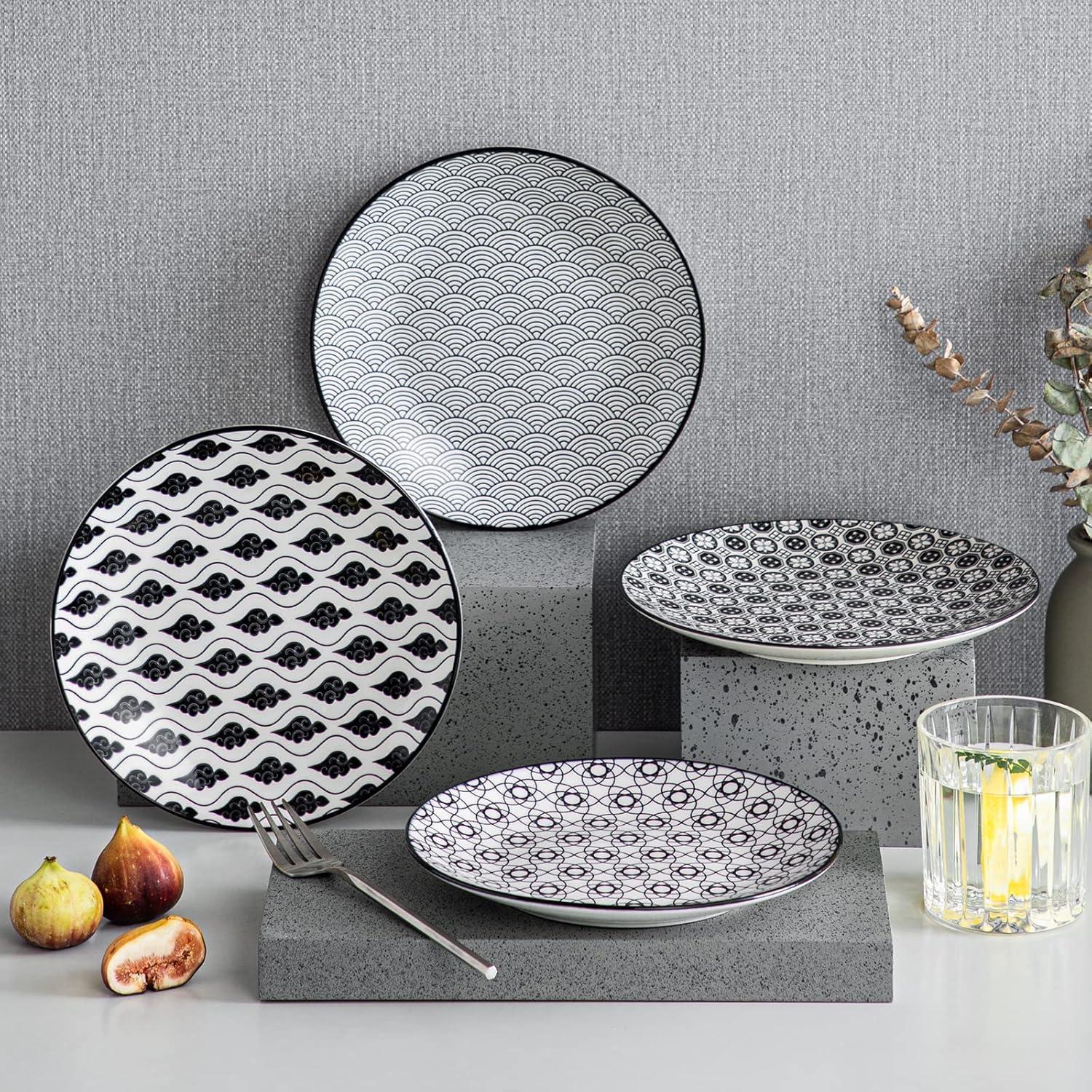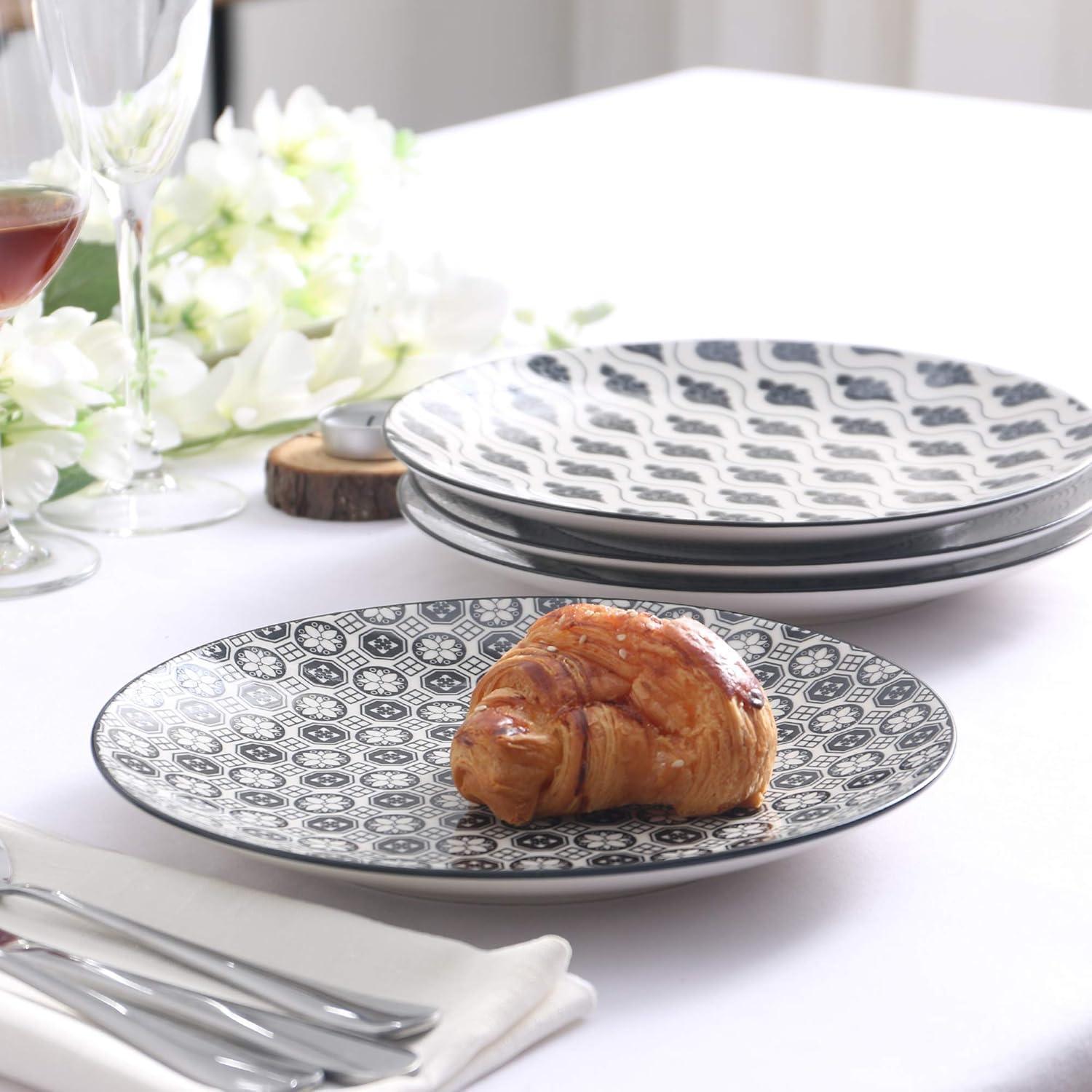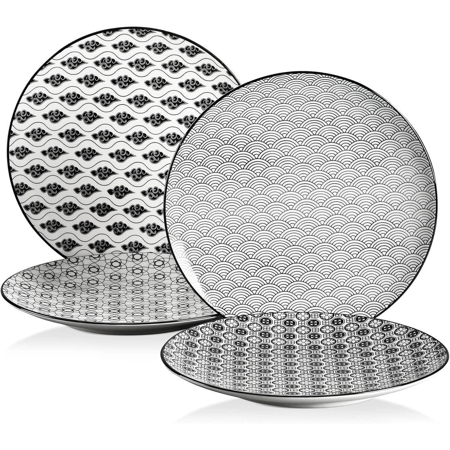Mehre Ergänzungen von vancasso. Weitere einzelne Ergänzungen zu der Serie "HARUKA" von der Marke Vancasso wie Müslischale, Kuchenteller, Suppenteller und Flachteller sind auch im unseren Shop erhältlich. Weitere Serie von der Marke vancasso wie MACARON, NATSUKI, MANDALA, JASMIN, BELLA, BONBON, STARRY, NAVIA sind auch erhältlich. Perfekte Geschenkidee und weitere Verwendung. Familienfeier, Restaurant, Party, Bankett oder nur optimal für den täglichen Gebrauch. Als beeindruckendes Geschenk ist das Kombiservice ideal für alle Altersgruppen, Familien und Freunde. Einfach zu reinigen, kratz- und schnittfest, säure- und fleckenresistent, geruchs- und geschmacksneutral. Keine schadstoffhaltige Kunststoffbeschichtung. Ausgezeichnetes Design und professioneller Hersteller. Traditionelle runde Form mit eleganten, wunderschönen Dekor in einer modernen Zusammenstellung, vintage klassische Pastelltöne-Schwarz und weiß ergeben ein wunderschönes Gedeck und entstehen eine wunderbare angenehme Harmonie. Ideal für jede festliche Anlässe oder täglichen Gebrauch. Eine außergewöhnliche gute Option für Sie!. Hohe Markenqualität. Aus hochwertigem und umweltfreundlichem Porzellan, ist das elegantes Geschirrset hitzebeständig so bei hohen Temperaturen ist es nicht leicht zu brechen. Mikrowellengeeignet, spülmaschinenfest, kühlschrankgeeignet und pflegeleicht. Komplette Kollektionen. 4-teiliges HARUKA Tafelservice Set bestehend aus 4 Desserttellern, Ø 21,5 x H 2,5 cm. Das kleines Kuchenteller Set eignet sich als Snackteller, Salatteller oder Pastateller für Abendessen Früchte Dessert Party Aperitif Kuchen. Jedes Kombiservice enthält vier verschiedene lebhafte Muster. Super sicher und fest verpackt.