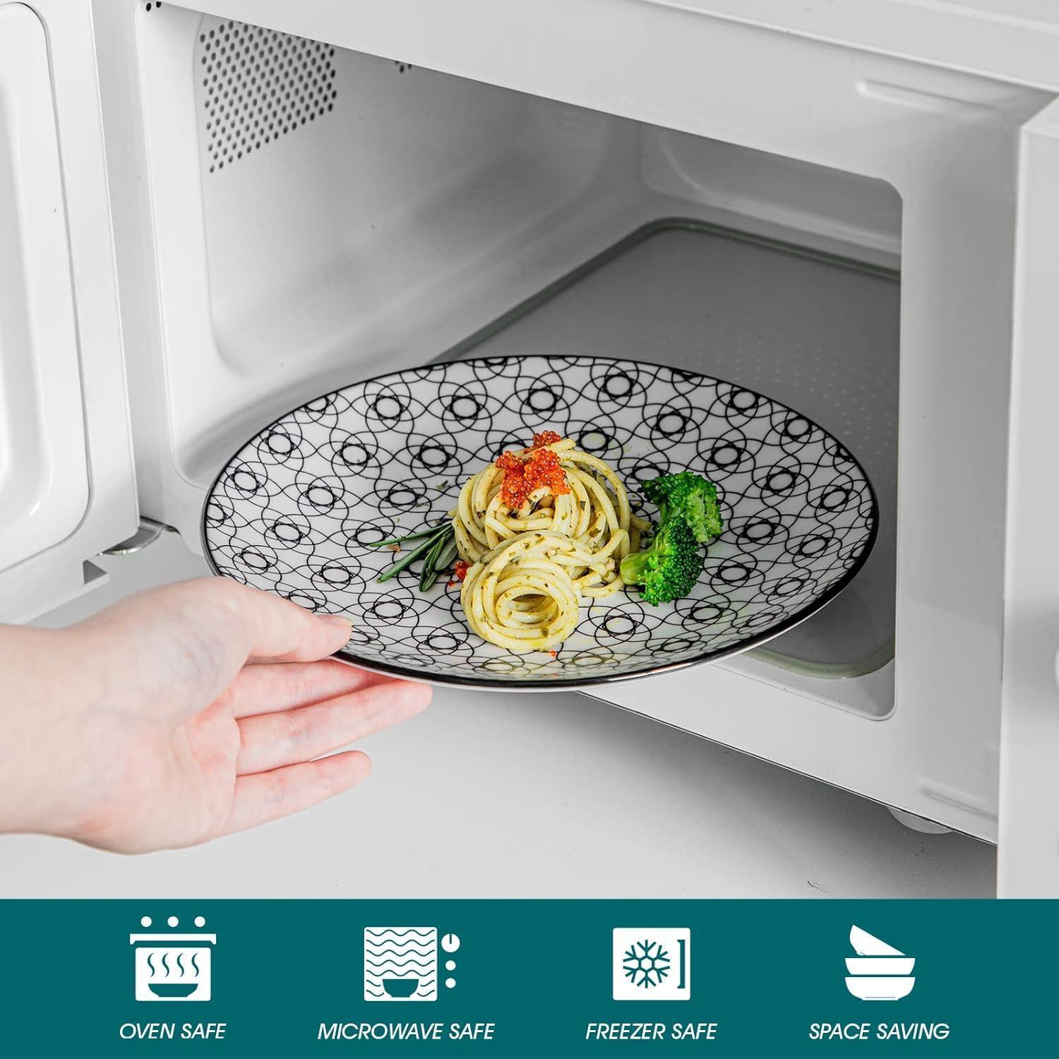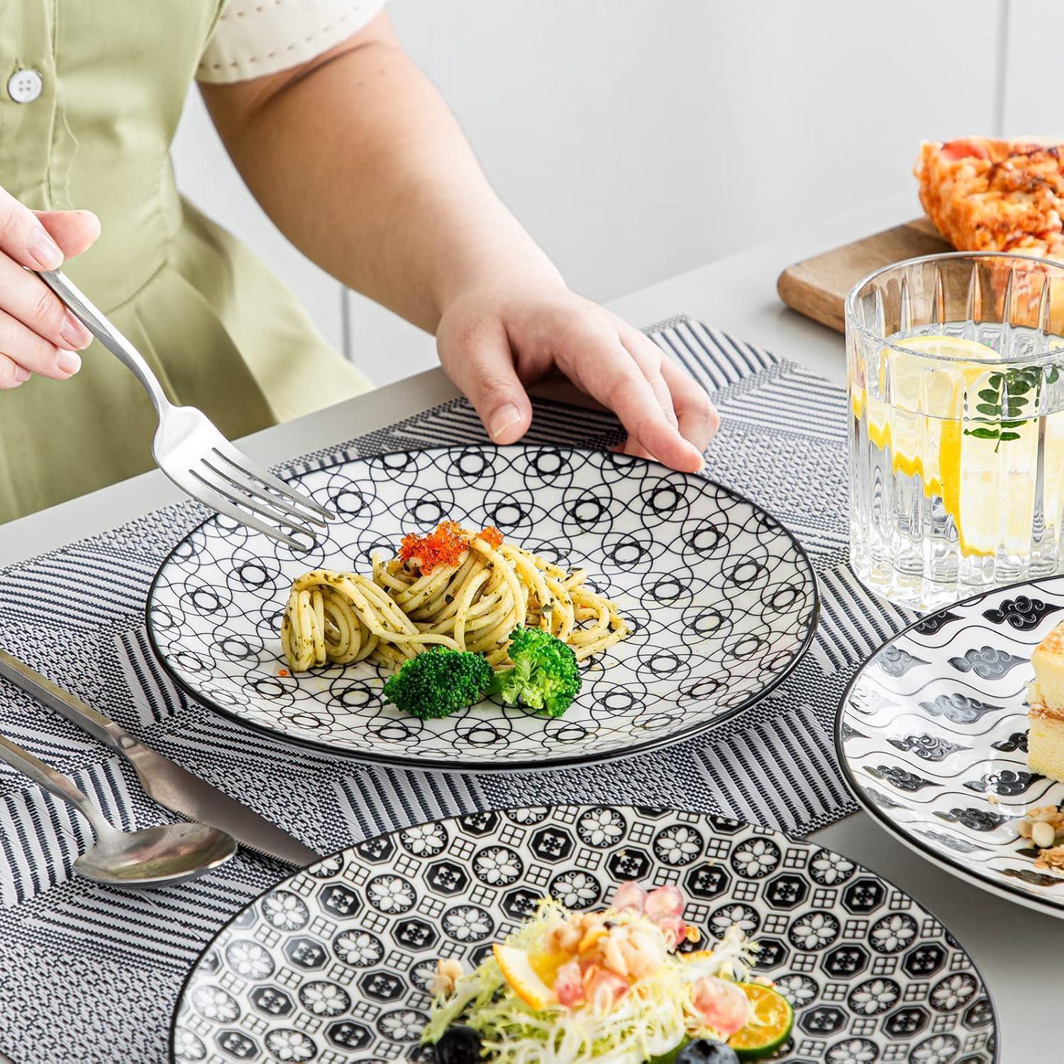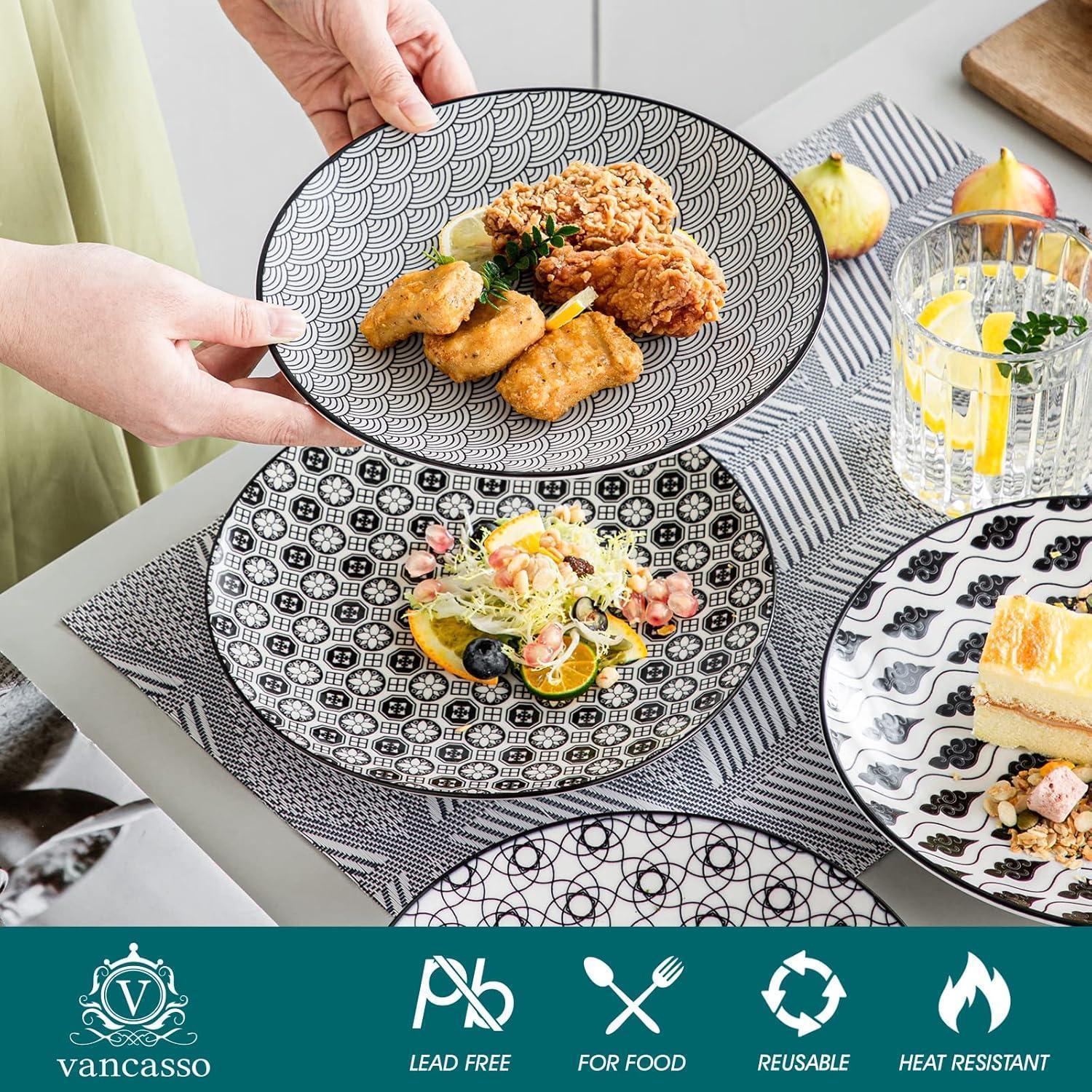 Mehre Ergänzungen von vancasso. Weitere einzelne Ergänzungen zu der Serie "HARUKA" von der Marke Vancasso wie Müslischale, Kuchenteller, Suppenteller und Flachteller sind auch im unseren Shop erhältlich. Weitere Serie von der Marke vancasso wie MACARON, NATSUKI, MANDALA, JASMIN, BELLA, BONBON, STARRY, NAVIA sind auch erhältlich. Perfekte Geschenkidee und weitere Verwendung. Familienfeier, Restaurant, Party, Bankett oder nur optimal für den täglichen Gebrauch. Als beeindruckendes Geschenk ist das Kombiservice ideal für alle Altersgruppen, Familien und Freunde. Einfach zu reinigen, kratz- und schnittfest, säure- und fleckenresistent, geruchs- und geschmacksneutral. Keine schadstoffhaltige Kunststoffbeschichtung. Ausgezeichnetes Design und professioneller Hersteller. Traditionelle runde Form mit eleganten, wunderschönen Dekor in einer modernen Zusammenstellung, vintage klassische Pastelltöne-Schwarz und weiß ergeben ein wunderschönes Gedeck und entstehen eine wunderbare angenehme Harmonie. Ideal für jede festliche Anlässe oder täglichen Gebrauch. Eine außergewöhnliche gute Option für Sie!. Hohe Markenqualität. Aus hochwertigem und umweltfreundlichem Porzellan, ist das elegantes Geschirrset hitzebeständig so bei hohen Temperaturen ist es nicht leicht zu brechen. Mikrowellengeeignet, spülmaschinenfest, kühlschrankgeeignet und pflegeleicht. Komplette Kollektionen. 4-teiliges HARUKA Tafelservice Set bestehend aus 4 Desserttellern, Ø 21,5 x H 2,5 cm. Das kleines Kuchenteller Set eignet sich als Snackteller, Salatteller oder Pastateller für Abendessen Früchte Dessert Party Aperitif Kuchen. Jedes Kombiservice enthält vier verschiedene lebhafte Muster. Super sicher und fest verpackt.