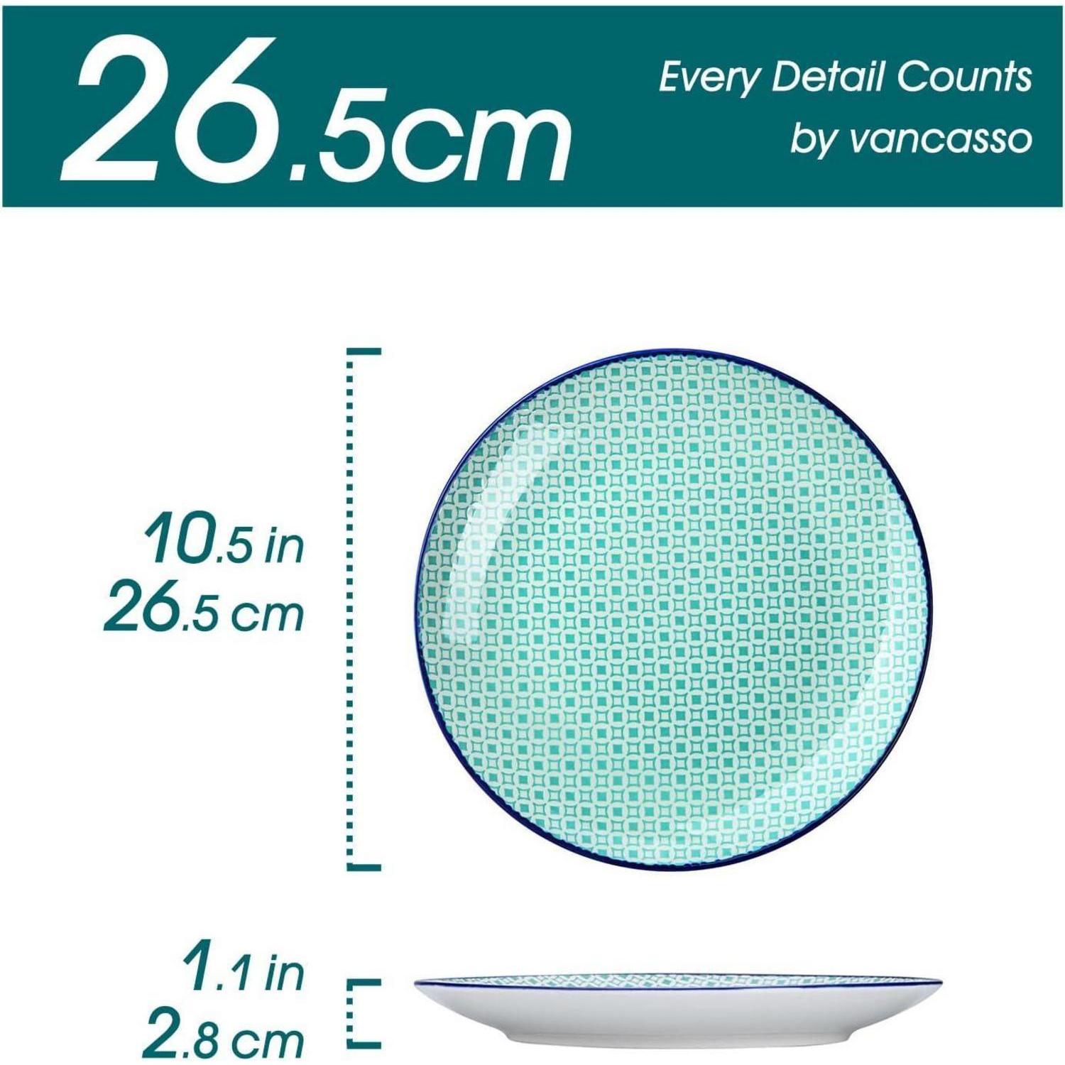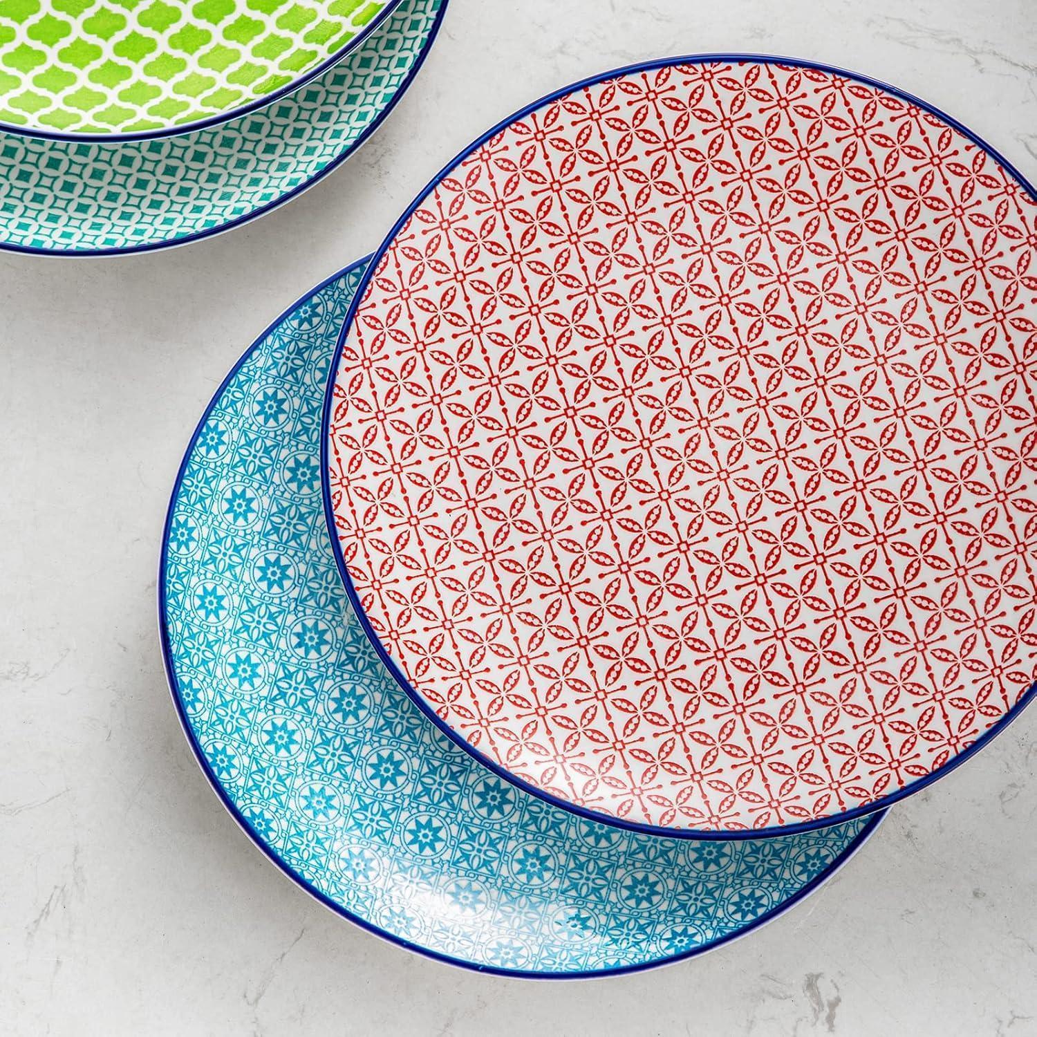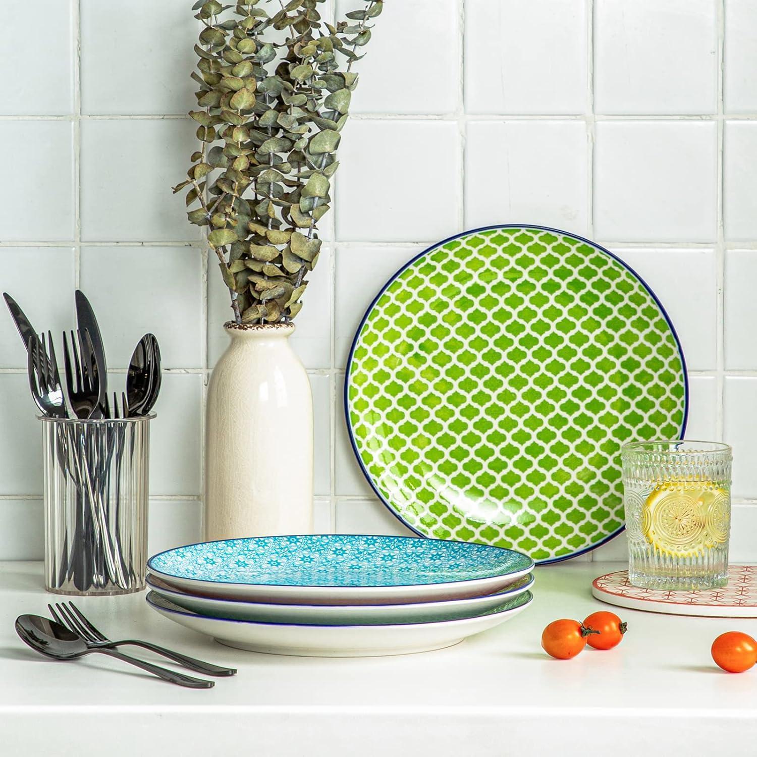 Das ausgezeichnete Design in einem stylischen Muster- und Farbenmix verleiht Ihrer Tafel eine stilvolle Eleganz. Jedes Set besteht aus 4 Flachstellern mit verschiedenen Farben und Mustern, die perfekt für den gedeckten Tisch sind. Die Größe von 26 x 26 x 2,8 cm macht sie ideal für jede Gelegenheit.