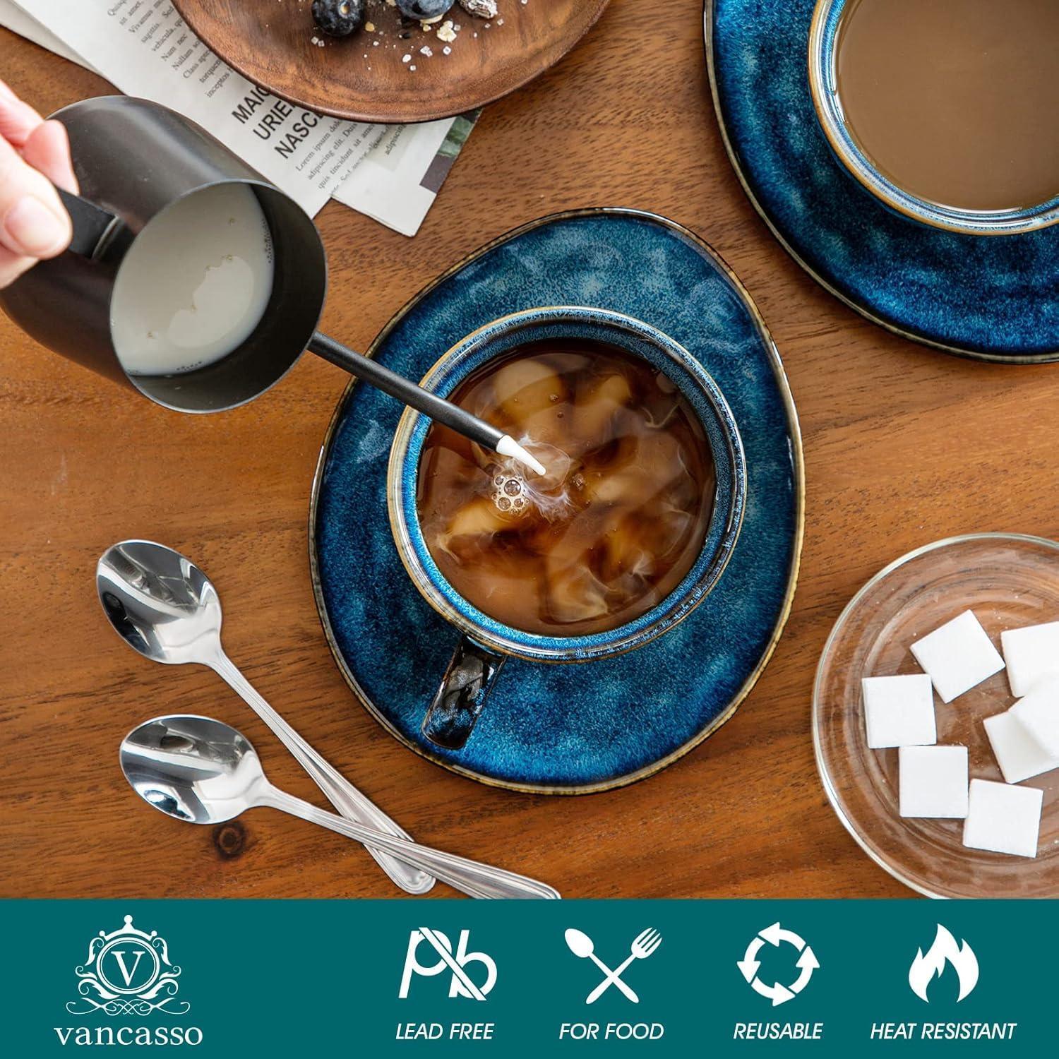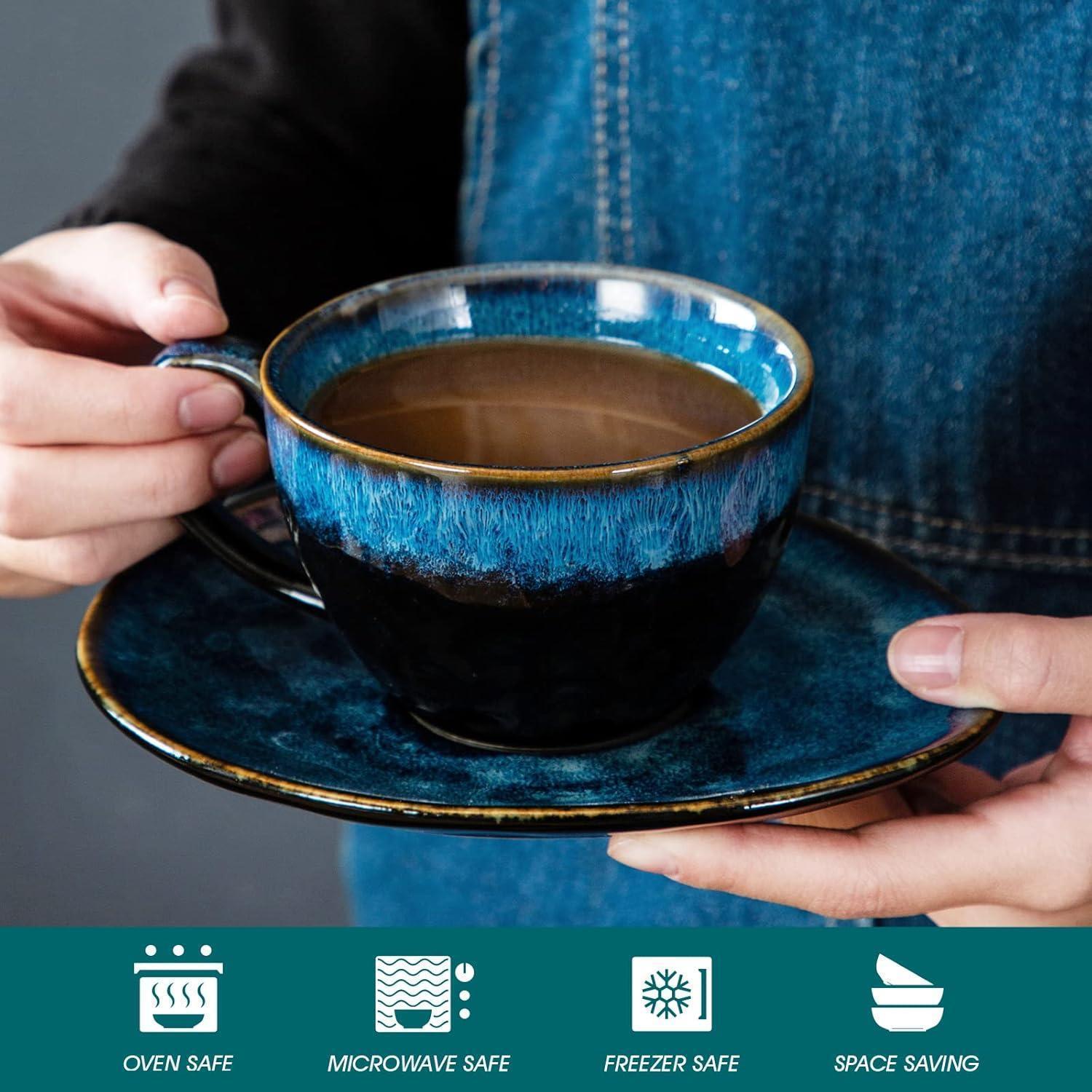 Komplette Kollektionen: Das 8-teilige Kaffeeset beinhaltet 4 Kaffeebecher und 4 Unterteller und bietet durch die spezielle Glasur eine einzigartige Farbgebung. Dieses Set wird nicht nur zum absoluten Hingucker auf Ihrem Tisch, sondern verleiht ihm auch eine stilvolle Eleganz.