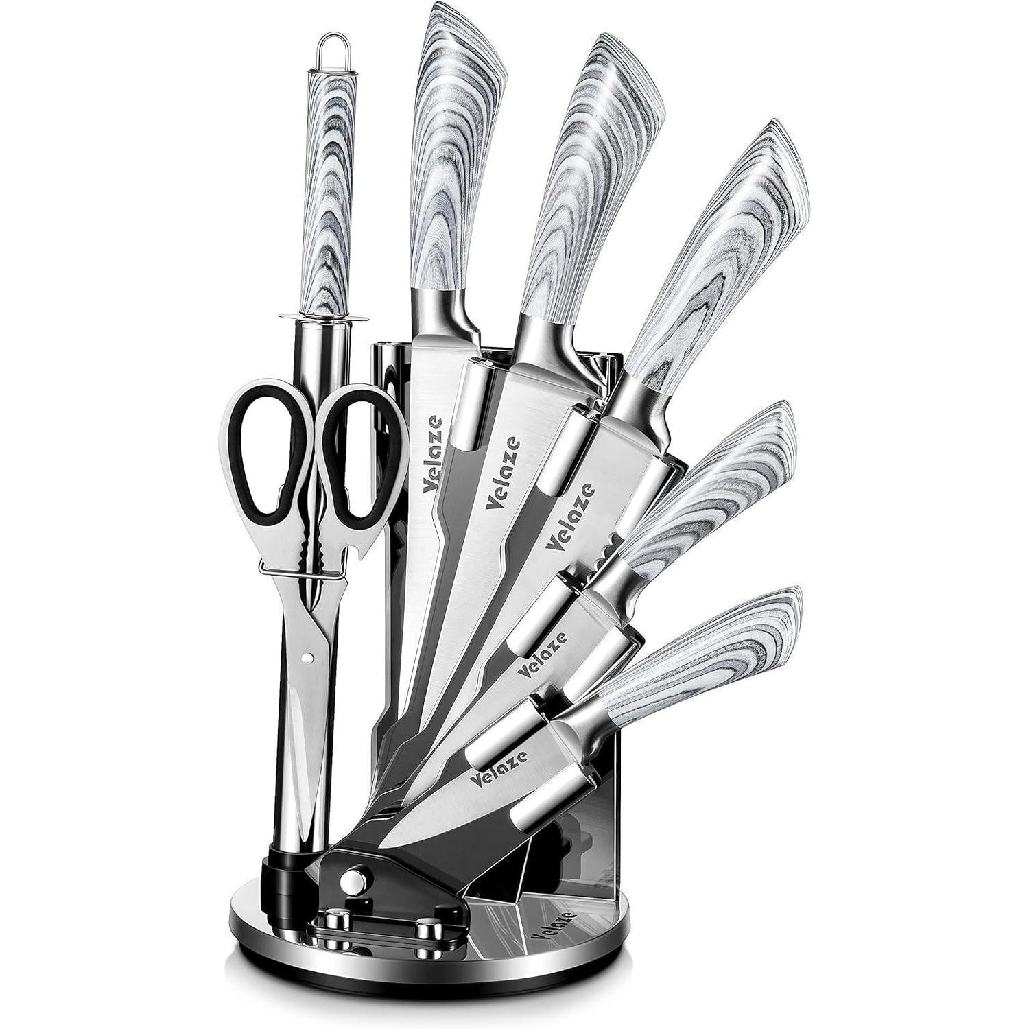 Attraktiver Messerblock mit transparentem Fenster und drehbarem Halter