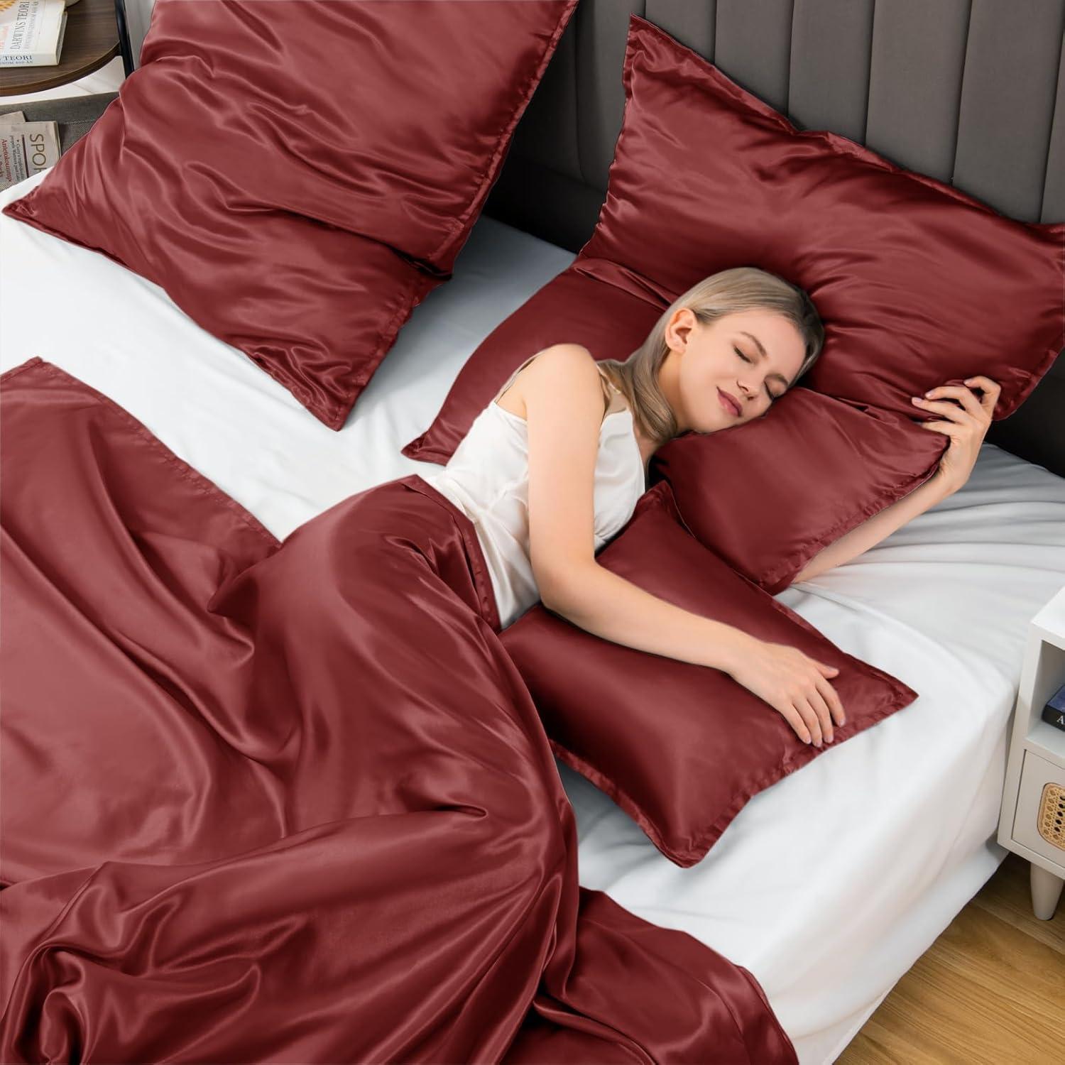 Vielit Satin Kissenbezug 2er Set 60x60 Rot mit Haargummis