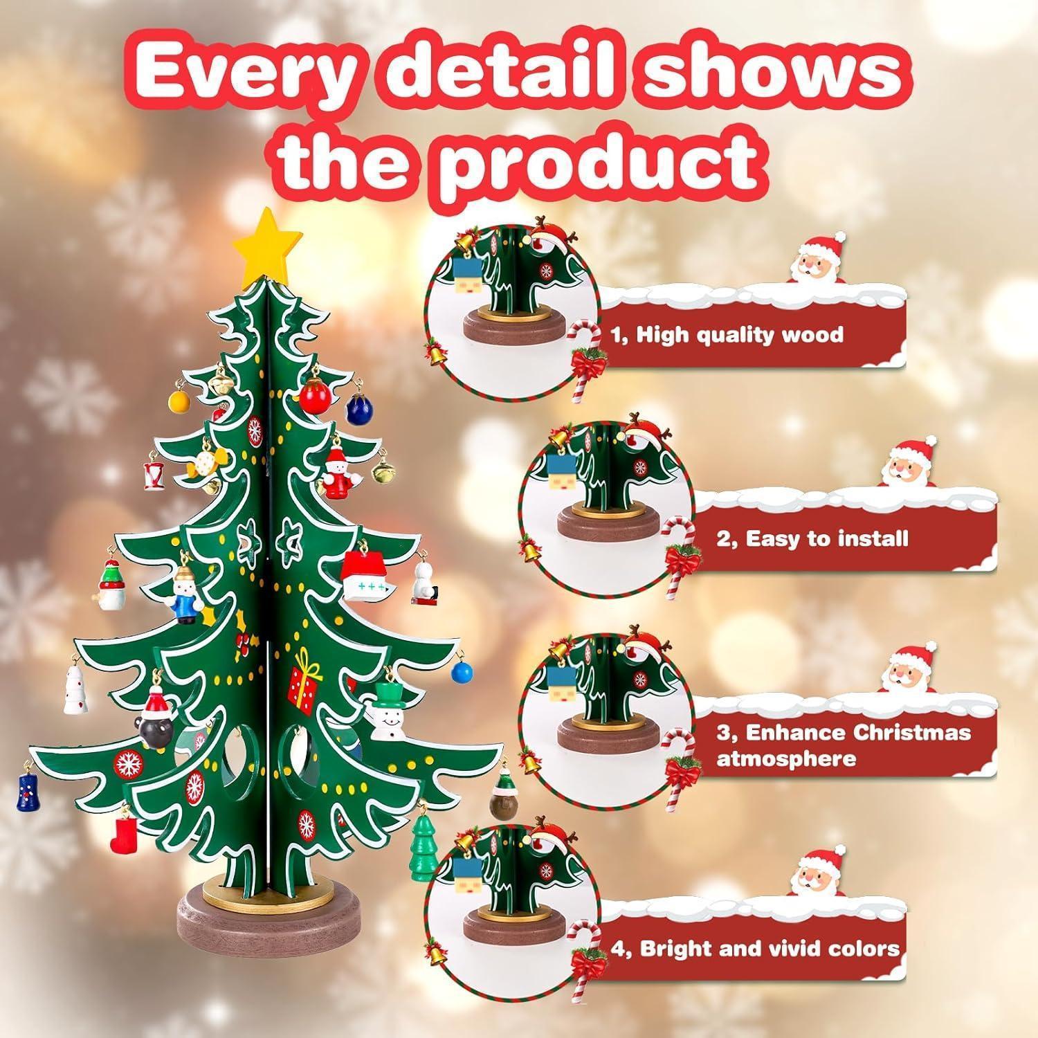 Unser Weihnachts-Adventskalender beinhaltet einen 13 Zoll Tisch-Weihnachtsbaum aus Holz (3 Stück für die Installation). Die Paketbox zeigt 24 Zahlen für die 24 Tage vom 1. Dezember bis 24. Dezember. Gestalten Sie Ihren eigenen einzigartigen Weihnachtsbaum und feiern Sie die Festtage in vollen Zügen.
