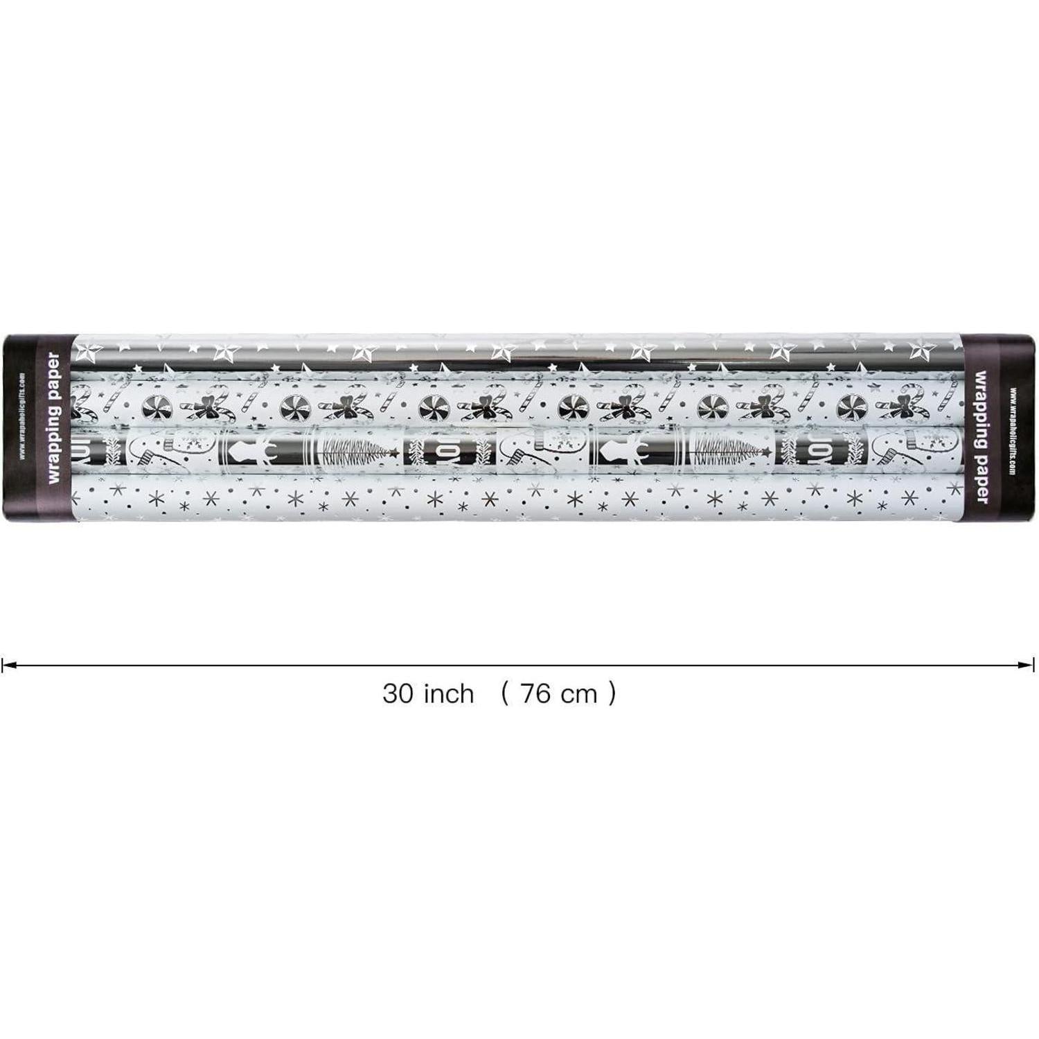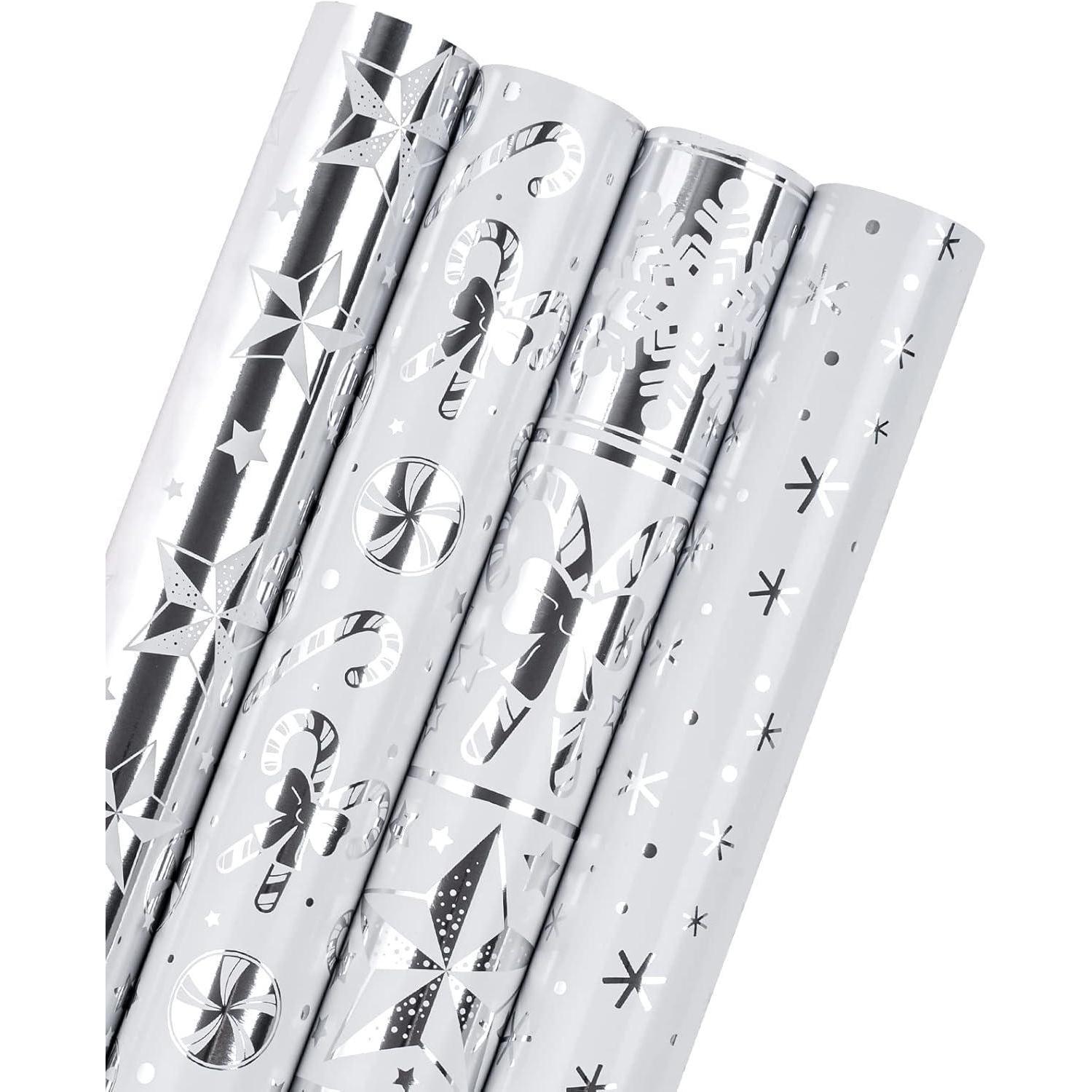 Mit einer Größe von 76 cm Breite und 305 cm Länge pro Rolle bieten sie ausreichend Papier für alle Ihre Verpackungsbedürfnisse. Die Metallic-Folienglanz-Details verleihen jedem Geschenk einen glänzenden Look und bringen festliche Stimmung in jeden Raum.