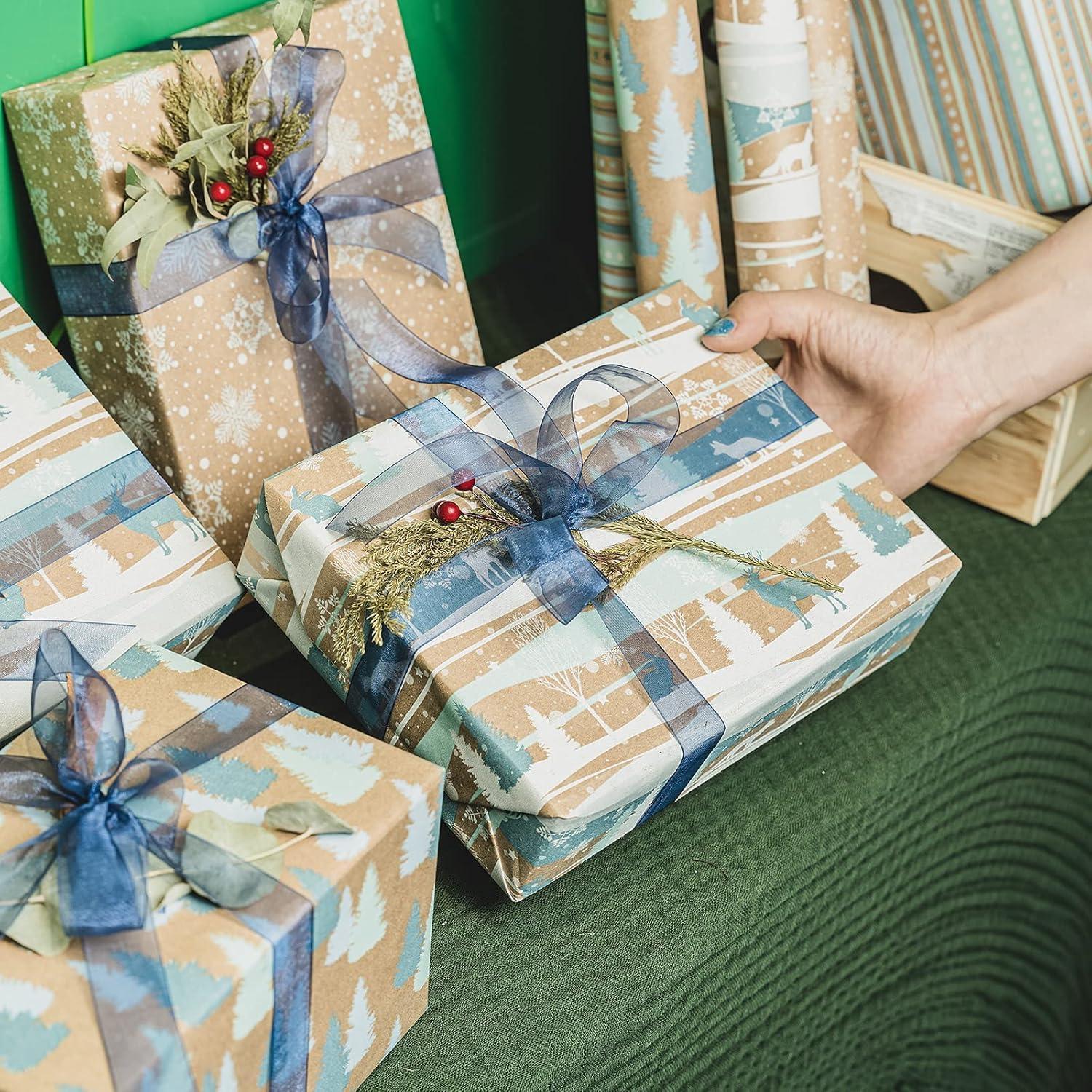 Weihnachtspapierrollen Kraftpapier 3 Rollen 43cm X 3m Blau